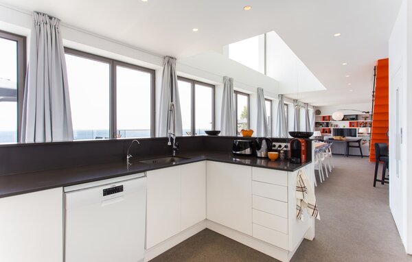 The expansive terrace with sea views features an infinity pool, outdoor dining area and gas barbecue, all conveniently adjacent to the main living area. A shaded lounge area provides the perfect place to relax. Another highlight is the roof terrace with sun loungers, breathtaking sea views and a hot tub.