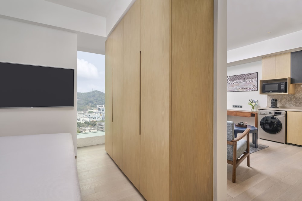 With a stay at Doubletree By Hilton Shenzhen Airport Residences in Shenzhen (Bao'an), you'll be a 3-minute drive from Fenghuang Mountain and 7 minutes from Fuyong Ferry Terminal. This hotel is 10.8 mi (17.4 km) from Window of the World and 4.7 mi (7.5 km) from Bihaiwan Golf Club. Make yourself at home in one of the 152 air-conditioned guestrooms. Complimentary wireless internet access keeps you connected, and satellite programming is available for your entertainment. Bathrooms feature shower/tub combinations, designer toiletries, and hair dryers. Conveniences include phones, as well as safes and coffee/tea makers. Distances are displayed to the nearest 0.1 mile and kilometer.
