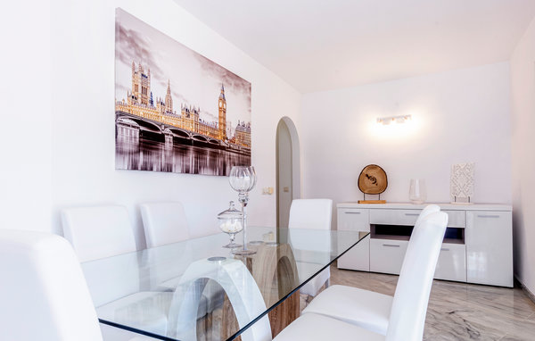 Welcome to this holiday apartment, which is located just a few hundred metres from the sea and the beach and offers space for four people. The living space is divided into two bedrooms, two bathrooms, a kitchen and a living room.