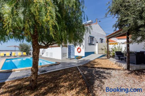 Featuring a swimming pool, a shared lounge, a garden and views of the garden, Mértola Natural - Monte da Eirinha is located in Mértola and provides accommodation with free WiFi. Accommodation is fitted with air conditioning, a fully equipped kitchen with a dining area, a flat-screen TV and a private bathroom with bath or shower and a hairdryer. A microwave, a fridge and oven are also featured, as well as a kettle and a coffee machine. Guests at the country house can enjoy a continental breakfast. Mértola Natural - Monte da Eirinha offers a barbecue. If you would like to discover the area, hiking is possible in the surroundings and the accommodation can arrange a bicycle rental service. Mina de São Domingos is 22 km from Mértola Natural - Monte da Eirinha, while Manta Rota is 45 km away. The nearest airport is Faro, 111 km from the country house, and the property offers a paid airport shuttle service.