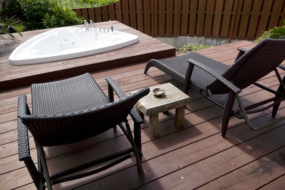 With a stay at this villa in Onna, you'll be within a 15-minute drive of Cape Zanpa and Okinawakaigan Quasi-National Park. This villa is 10.1 mi (16.3 km) from American Village and 10.6 mi (17.1 km) from Kadena Air Base. Make yourself comfortable in this air-conditioned villa, which features a private hot tub and a flat-screen TV. There's a private balcony. A kitchen is outfitted with a refrigerator, a stovetop, and a microwave. Complimentary wireless internet access keeps you connected, and a DVD player is provided for your entertainment. A private bathroom with a separate bathtub and shower features a deep soaking tub and complimentary toiletries. Distances are displayed to the nearest 0.1 mile and kilometer.