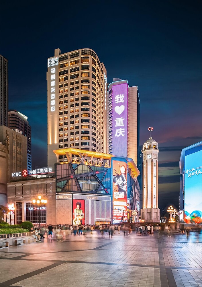 With a stay at Four Points by Sheraton Chongqing in Chongqing (Yuzhong), you'll be steps from Jiefangbei Pedestrian Street and 12 minutes by foot from Chongqing World Financial Center. This luxury hotel is 0.8 mi (1.3 km) from Arhat Temple and 0.9 mi (1.4 km) from Hongyadong. Make yourself at home in one of the 289 air-conditioned rooms featuring minibars and LCD televisions. Complimentary wireless internet access keeps you connected, and cable programming is available for your entertainment. Private bathrooms with bathtubs or showers feature complimentary toiletries and hair dryers. Conveniences include safes and desks, and housekeeping is provided daily. Distances are displayed to the nearest 0.1 mile and kilometer.