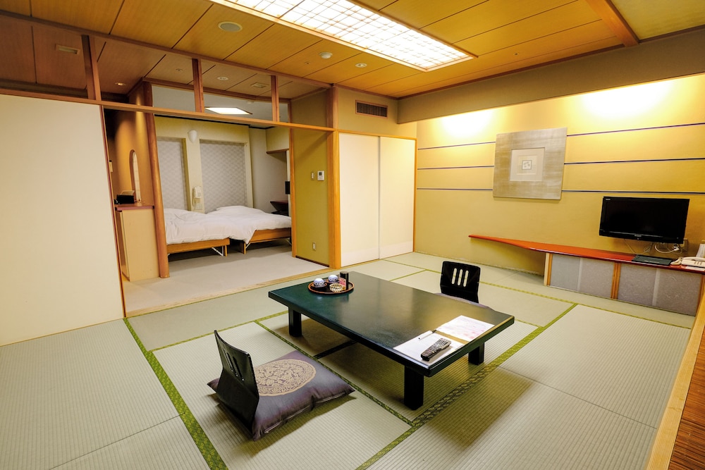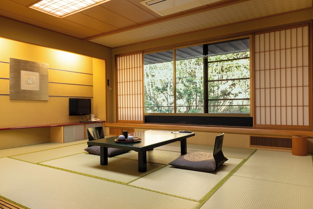 With a stay at Syoenso Hozugawatei in Kameoka, you'll be 15.2 mi (24.5 km) from Arashiyama Monkey Park Iwatayama and 15.2 mi (24.5 km) from Togetsukyo Bridge. This ryokan is 15.5 mi (24.9 km) from Arashiyama and 15.6 mi (25 km) from Arashiyama Onsen. Make yourself at home in one of the 56 individually furnished guestrooms, featuring refrigerators and minibars. Complimentary wireless internet access keeps you connected, and 19-inch flat-screen televisions are provided for your entertainment. Bathrooms have complimentary toiletries and bidets. Conveniences include safes and electric kettles, and housekeeping is provided weekly. Distances are displayed to the nearest 0.1 mile and kilometer.