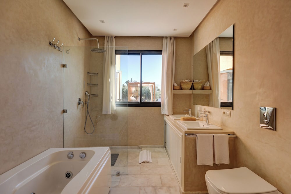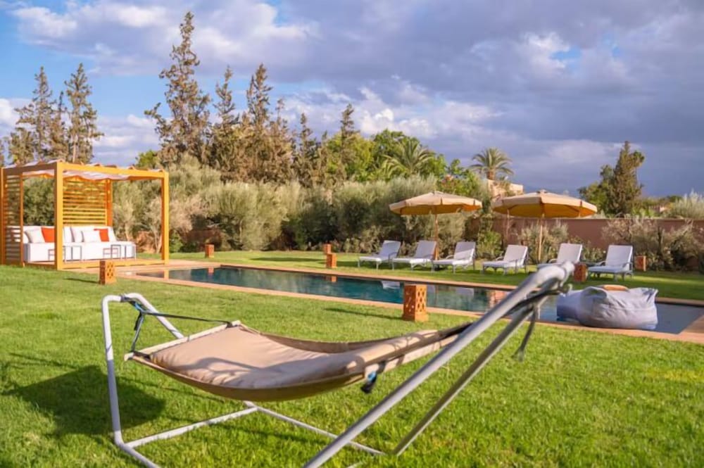 When you stay at Villa Rosea in Aghouatim, you'll be next to a golf course and 7 minutes by car from Aqua Fun Club. This golf hotel is 10.3 mi (16.6 km) from Avenue Mohamed VI and 5.4 mi (8.7 km) from PalmGolf Marrakech. Stay in one of 7 guestrooms featuring LCD televisions. Complimentary wireless internet access keeps you connected, and cable programming is available for your entertainment. Private bathrooms with bathtubs or showers feature complimentary toiletries and hair dryers. Conveniences include safes and complimentary bottled water, and housekeeping is provided daily. Distances are displayed to the nearest 0.1 mile and kilometer.