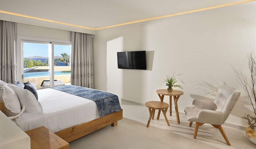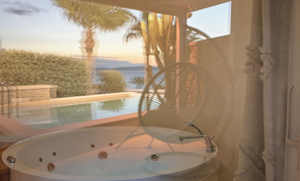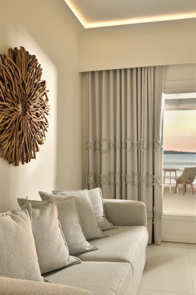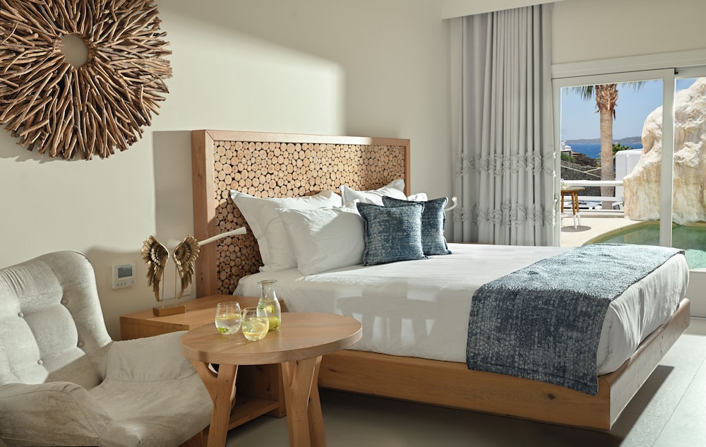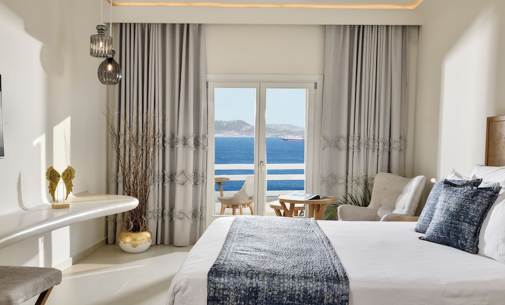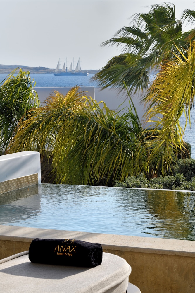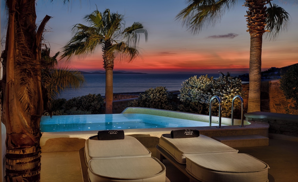 With a stay at Anax Resort & Spa in Mykonos, you'll be within a 10-minute drive of Windmills of Mykonos and Mykonos Old Port. This beach hotel is 4.9 mi (7.9 km) from Paradise Beach and 6.2 mi (10 km) from Mykonos New Port. Make yourself at home in one of the 35 guestrooms featuring minibars and espresso makers. Rooms have private furnished balconies or patios. 40-inch flat-screen televisions with satellite programming provide entertainment, while complimentary wireless internet access keeps you connected. Private bathrooms with shower/tub combinations feature jetted bathtubs and designer toiletries. Distances are displayed to the nearest 0.1 mile and kilometer.