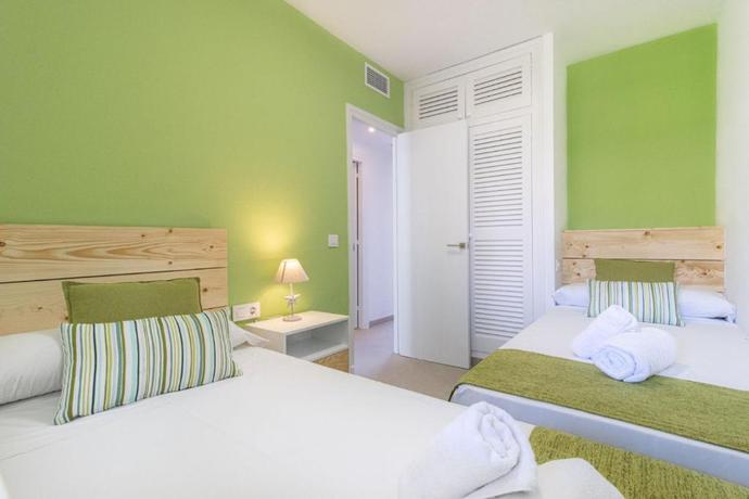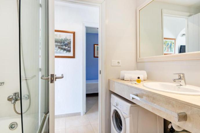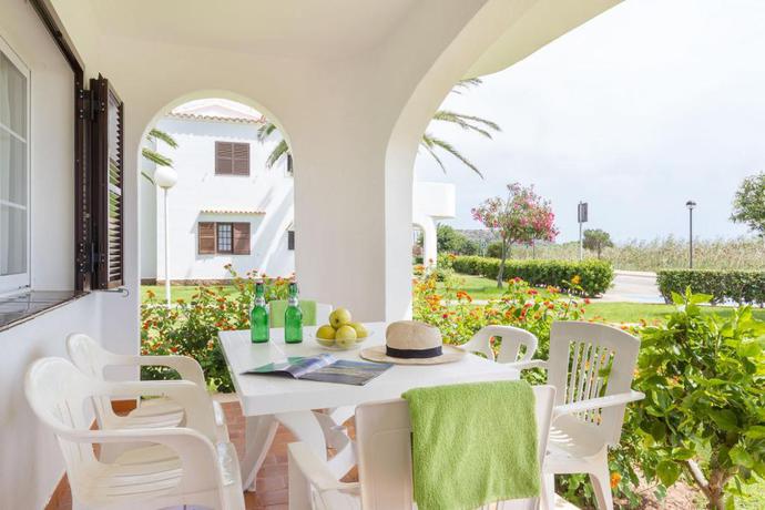 HOTEL: This renovated complex in 2010, has 12 apartments, with features that offer you the maximum level of comfort, a swimming pool with a slide, a restaurant, a lobby, a currency exchange service, a playground, a café, a bar and a nightclub. The establishment also offers internet (for a fee), an oudooor car park and bicycle rental. SITUATION: This aparthotel is in San Jaime in the surrounding area of the establishment, guests can find bars, restaurants, supermarkets, leisure areas, a nightclub and a bus stop. 600 metres away, clients have a beach. It's 19 kilometres from Menorca Airport. ROOM: Guests are offered renovated apartments have an air-conditioning system, a central heating system, a satellite or cable television, a safety deposit box, a bathroom with a shower, a bath, a small kitchen, a fridge, hot plates, a microwave, a coffee maker and a kettle. They also have a washing machine, an ironing set and 2 terraces. FACILITIES: Outdoors, clients have access to a swimming pool, a children's swimming area, an outdoor bar, a terrace with deck chairs and parasols. At the beach, customers can find deck chairs and parasols (available for a fee). Clients can enjoy activities such as water-skiing, speedboating, diving, windsurfing, canoeing and pedal-boating. Our guests can also enjoy tennis, play ping-pong, playing billiards and bowling. 20 kilometres away from the establishment, clients have at their disposal a golf course. The establishment also offers an entertainment programme for adults.