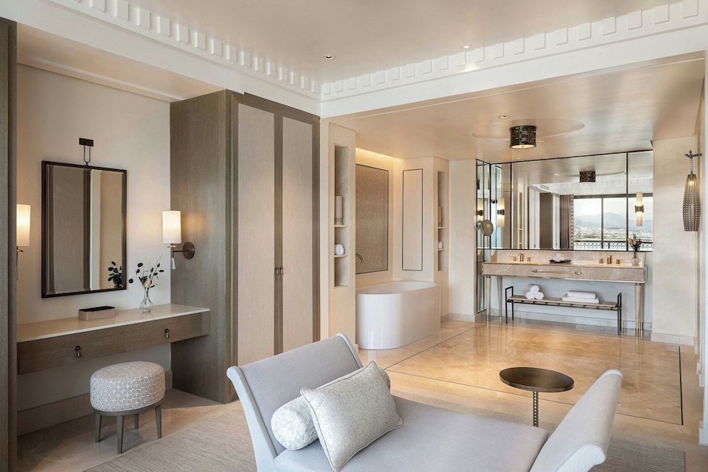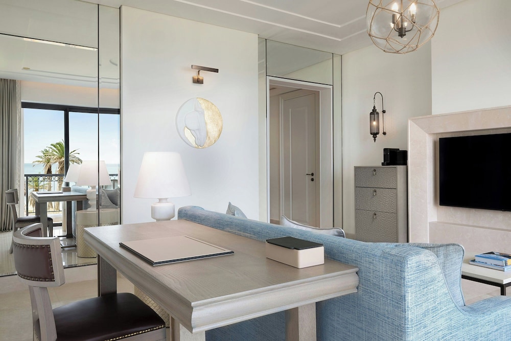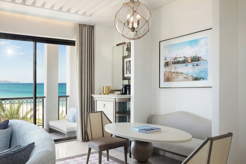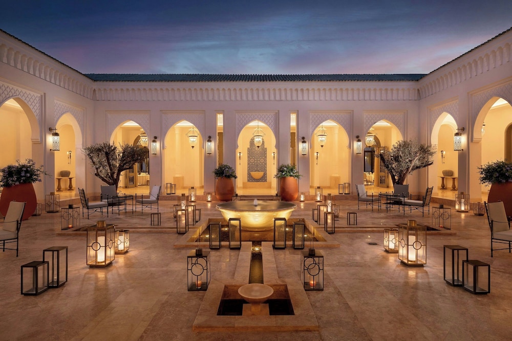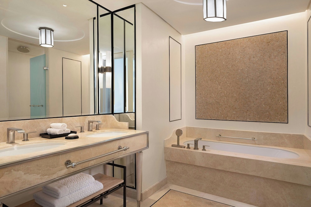 When you stay at The St. Regis La Bahia Blanca Resort, Tamuda Bay in Allyene, you'll be on the beach and 6 minutes by car from Smir Water Park. This beach hotel is 5 mi (8.1 km) from Fnideq Beach and 5.3 mi (8.6 km) from Fnideq Mosque. Make yourself at home in one of the 100 individually decorated guestrooms, featuring minibars and espresso makers. Your memory foam bed comes with premium bedding. Smart televisions with digital programming provide entertainment, while complimentary wireless internet access keeps you connected. Bathrooms feature separate bathtubs and showers with rainfall showerheads and complimentary toiletries. Distances are displayed to the nearest 0.1 mile and kilometer.