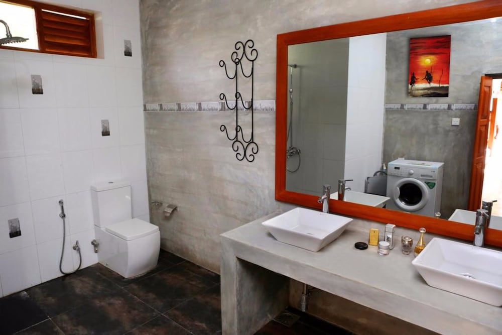 With a stay at this villa in Aluthgama, you'll be near the beach, within a 5-minute drive of Bentota Beach and Kaluwamodara Bridge. This villa is 1.1 mi (1.8 km) from Prince Lanka Ayurvrda and 1.5 mi (2.5 km) from Kande Vihare Temple. Make yourself comfortable in this air-conditioned villa, featuring a kitchen with an oven and a stovetop. An LED television with cable programming provides entertainment, while complimentary wireless internet access keeps you connected. Conveniences include a safe and a desk, and housekeeping is provided on a limited basis. Distances are displayed to the nearest 0.1 mile and kilometer.