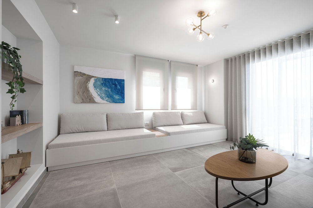 When you stay at Blue Whisper Luxury Living Suites in Aristotelis, you'll be on the beach, within a 10-minute walk of Wet Dream Beach and Voulitsa. This beach apartment is 2.6 mi (4.1 km) from Komítsa and 3.3 mi (5.4 km) from Ierissos Beach. Make yourself at home in one of the 9 individually decorated guestrooms, featuring kitchens. Your memory foam bed comes with premium bedding. 40-inch Smart televisions with cable programming provide entertainment, while complimentary wireless internet access keeps you connected. Conveniences include coffee/tea makers and complimentary bottled water. Distances are displayed to the nearest 0.1 mile and kilometer.