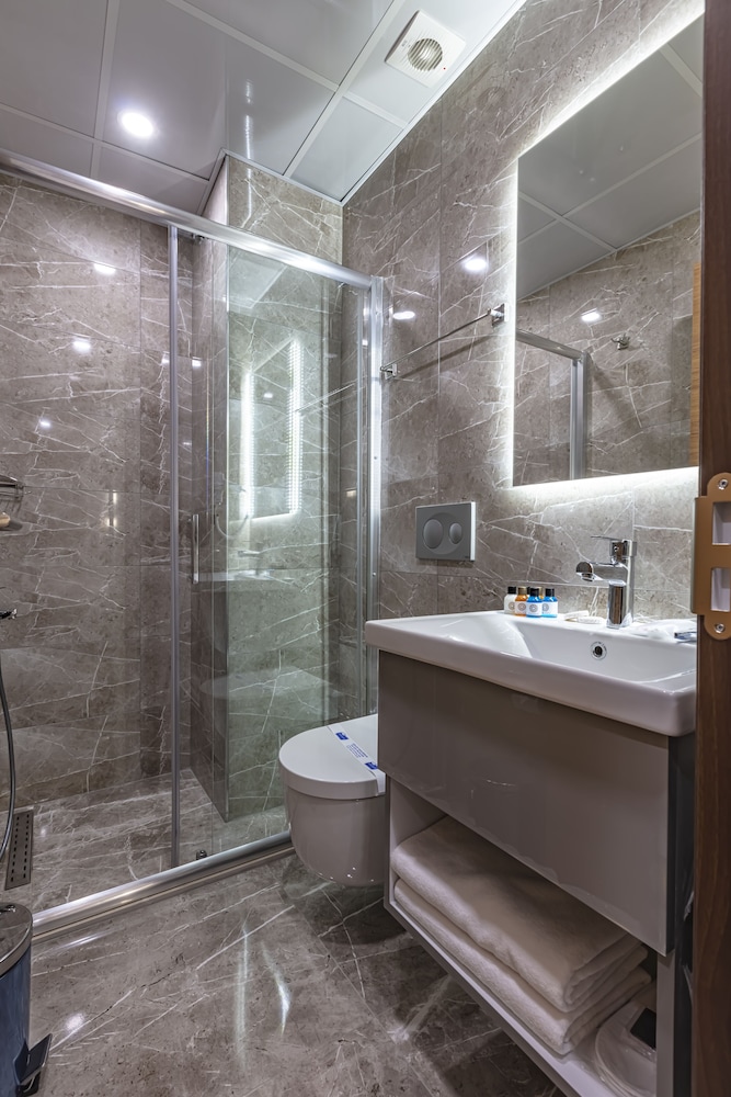 When you stay at Grand Hamit By Karadayi Airport Hotel in Arnavutköy, you'll be connected to a shopping center, within a 5-minute drive of Florya Ataturk Villa and Green Mosque. This hotel is 11.3 mi (18.2 km) from Mall of Istanbul and 18.5 mi (29.7 km) from Bahçeşehir Gölet Park. Make yourself at home in one of the 50 individually decorated guestrooms, featuring minibars and LCD televisions. Your Tempur-Pedic bed comes with down comforters and Egyptian cotton sheets. Complimentary wired and wireless internet access keeps you connected, and digital programming provides entertainment. Bathrooms feature showers with rainfall showerheads and designer toiletries. Distances are displayed to the nearest 0.1 mile and kilometer.