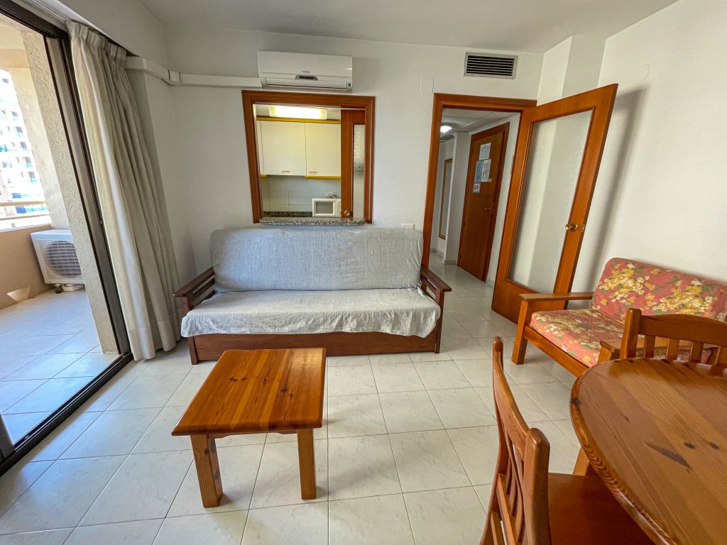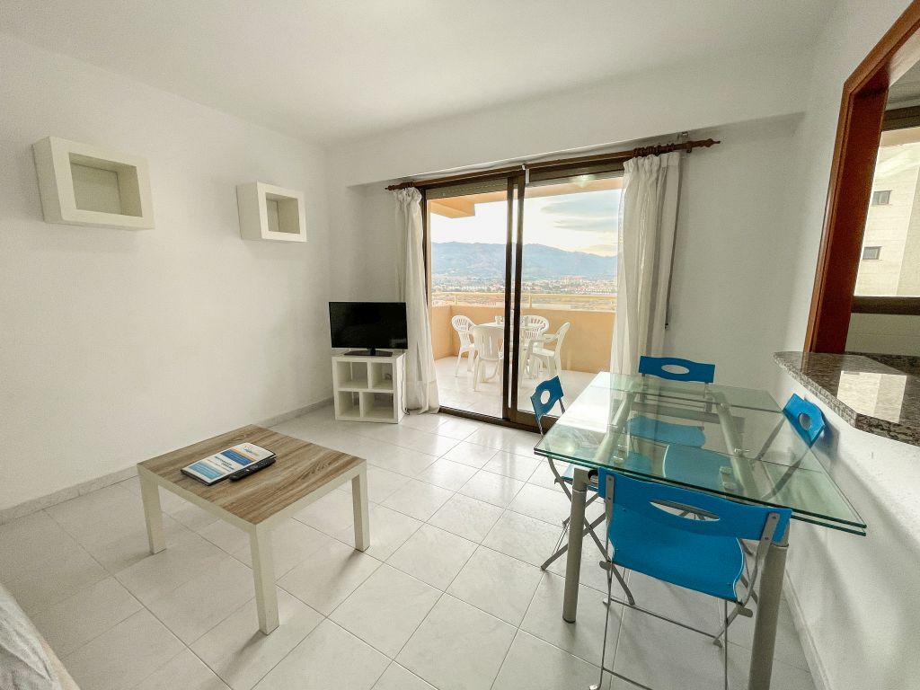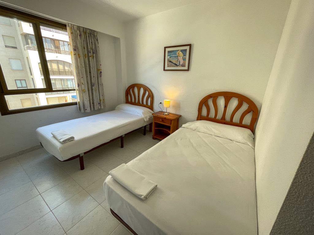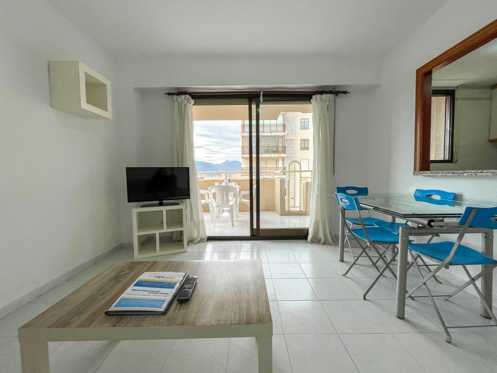 The Benicasim 3000 Apartments can accommodate up to 4 people, as they have a double bedroom and a double sofa bed in the living room. The bedroom can have a double bed or two single beds, and the type of bed cannot be reserved in advance. They have an open-plan kitchen, equipped with a fridge, glass-ceramic hob, oven and microwave, as well as the necessary kitchenware for a holiday stay. No table linen or dishcloths are provided. The apartaments have a complete bathroom and a glazed terrace, which can be accessed from the living room.