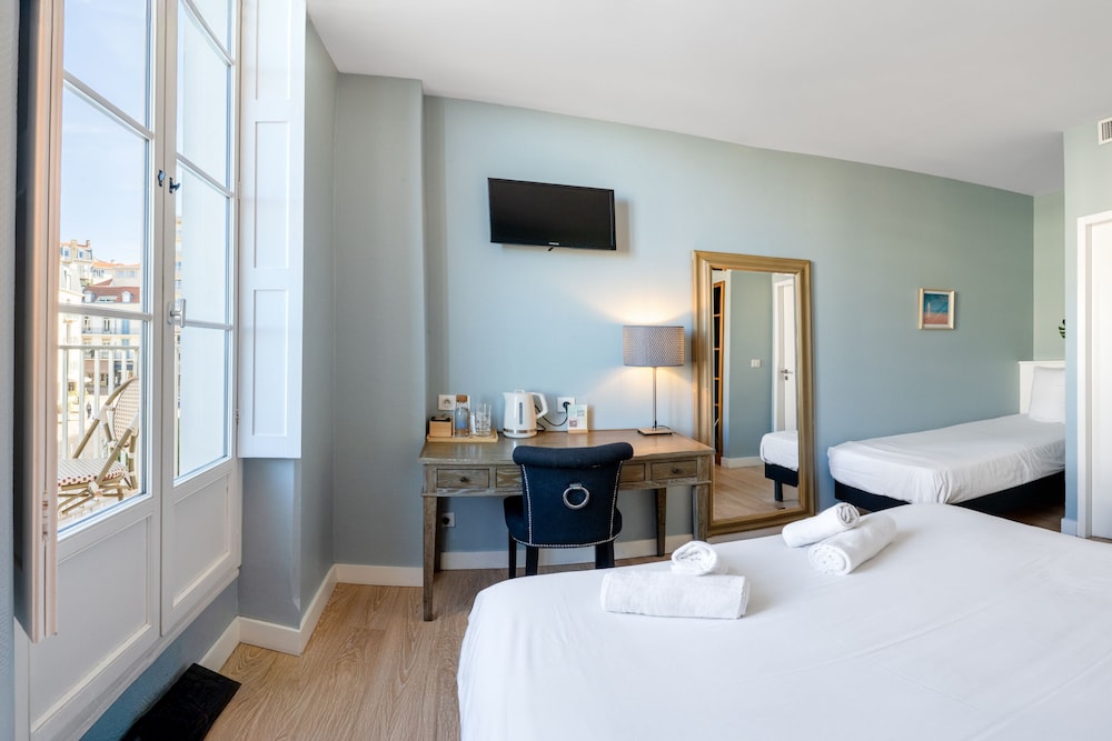 A stay at Hôtel de L'Océan places you in the heart of Biarritz, steps from Saint Eugenie Church and Old Harbor. This golf hotel is 0.2 mi (0.2 km) from Fishermen's Port and 0.2 mi (0.3 km) from Biarritz Aquarium. Make yourself at home in one of the 26 air-conditioned rooms featuring flat-screen televisions. Complimentary wireless internet access keeps you connected, and satellite programming is available for your entertainment. Private bathrooms with bathtubs or showers feature complimentary toiletries and hair dryers. Conveniences include phones, as well as safes and desks. Distances are displayed to the nearest 0.1 mile and kilometer.