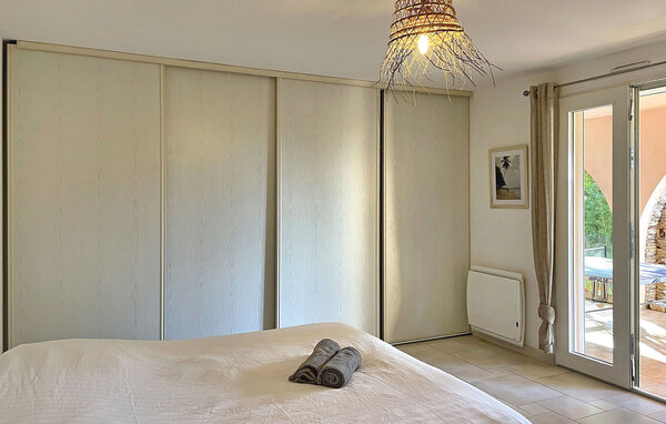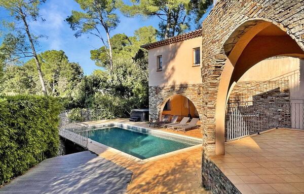 This villa in Cap Bénat, Bormes les Mimosas, is part of a private estate and offers its residents exclusive access to the beach. The hillside villa offers spacious accommodation on two different levels. Upon entering the villa you will find an air-conditioned living area with an open-plan kitchen and dining area. The fully equipped kitchen has major appliances and a central island, while a sheltered terrace with a gas barbecue offers additional outdoor space. There are four bedrooms one on the ground floor and three on the lower level, each with double beds and en-suite shower room or separate WC. On the covered terrace there is a table tennis table, a heated, alarm-secured pool and fenced gardens on different levels. There is parking for three cars on the property. The villa is located in the heart of the private and gated estate of Cap Bénat and offers access to the private beaches of the Cap Bénat and Gaou Bénat areas. The property's restaurant (on the beach) is open from 1 May to mid-September (accessible by car). Cap Bénat is a 2500-hectare rocky promontory on the Mediterranean coast of the Var in Bormes-les-Mimosas. It is considered one of the most prestigious places on the Var coast. The nearest shops can be found in Bormes les Mimosas, about 8 km away. Please note that special rules apply on the Cap Bénat estate, including quiet hours from 23:00. If disturbances at night require the intervention of the caretaker, the full deposit may be retained. Exclusive holiday villa in the heart of the Cap Benat estate.