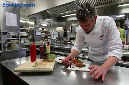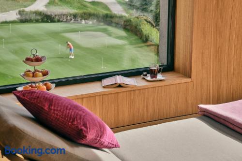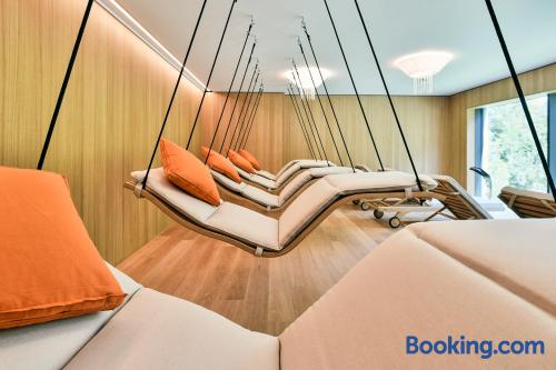 The stylish Aktiv-Hotel Sarotla is located right in the Brandnertal Ski Area, next to the golf course in Brand. It offers fine cuisine and free Wi-Fi. Brand can be found 6.2 mi south of Bludenz in the province of Vorarlberg, at the foothills of the 9.7 feet high Schesaplana mountain. Each room in the Sarotla Hotel features a balcony, a satellite TV and a modern bathroom including bathrobes. You can take part in guided hiking and biking tours free of charge. A Finnish sauna, a steam bath, an infrared cabin, a solarium and various massage are available in the modern spa area of the Hotel Sarotla. From the relaxation room you can enjoy panoramic mountain views. An elegant bar with a fireplace and the à-la-carte restaurant with a terrace offer a wide range of drinks and fine Vorarlberg specialties. There is also a modern storage room for ski equipment, golf bags and bikes.