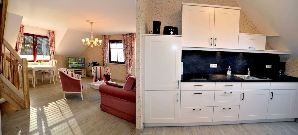 Located in Burg, Villa Rosamunde is a 3-minute drive from Spreewald-Therme and 12 minutes from Holländerwindmühle Straupitz. This hotel is 8.8 mi (14.2 km) from Slavic Fort Raddusch and 11 mi (17.7 km) from Castle Wall. Make yourself at home in one of the 7 guestrooms, featuring kitchens with refrigerators and stovetops. Complimentary wireless internet access keeps you connected, and plasma televisions are provided for your entertainment. Conveniences include desks and coffee/tea makers, and housekeeping is provided on a limited basis. Distances are displayed to the nearest 0.1 mile and kilometer.