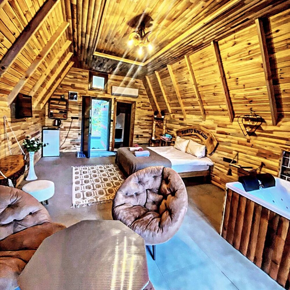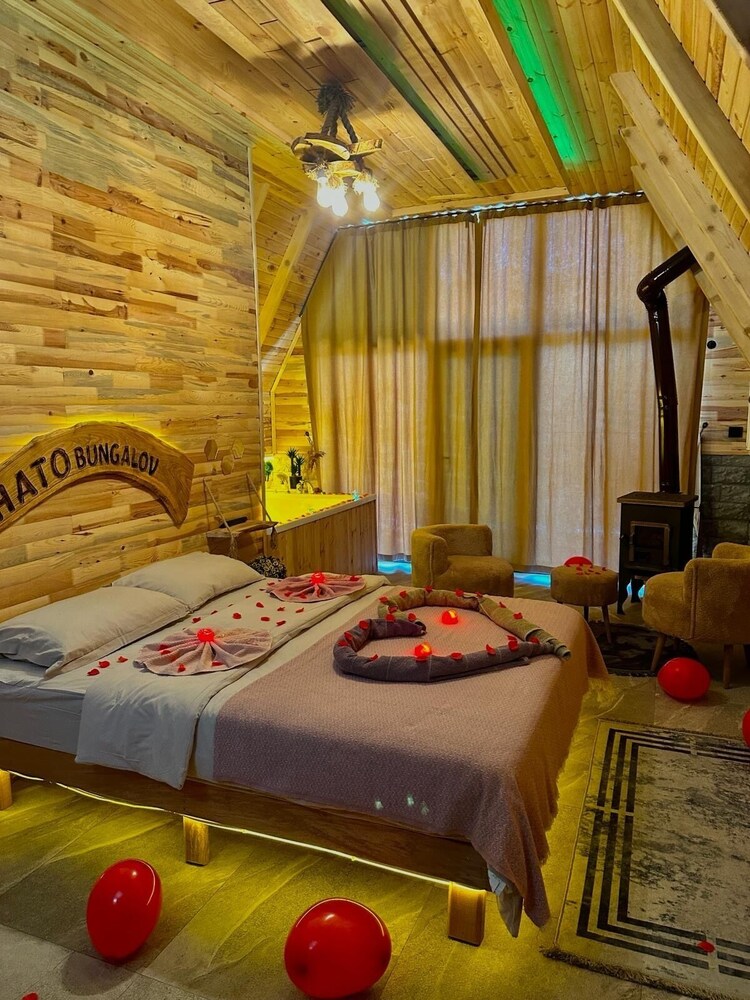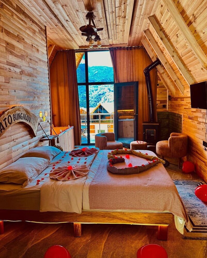 Located in Çamlıhemşin, Shato Bungalov Suit is in the mountains, a 1-minute drive from Camlihemsin Central Mosque and 7 minutes from Firtina River Bridge. This hotel is 4.6 mi (7.5 km) from Senyuva Bridge and 4.9 mi (7.9 km) from Ayder Yaylasi. Treat yourself to a stay in one of the 11 individually decorated guestrooms, featuring fireplaces and private pools. Your Select Comfort bed comes with down comforters and Egyptian cotton sheets. Rooms have private balconies. 75-cm LED televisions with satellite programming provide entertainment, while complimentary wireless internet access keeps you connected. Private bathrooms with separate bathtubs and showers feature jetted bathtubs and rainfall showerheads. Distances are displayed to the nearest 0.1 mile and kilometer.