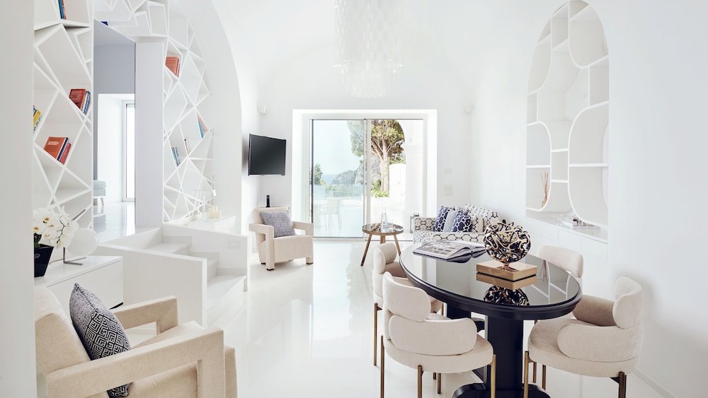 With a stay at Hotel Scalinatella, you'll be centrally located in Capri, just a 5-minute walk from Tragara Viewpoint and 6 minutes by foot from Piazza Umberto I. This luxury hotel is 7.7 mi (12.5 km) from Sorrento Beach and 0.1 mi (0.1 km) from Piazzetta di Capri. Make yourself at home in one of the 30 air-conditioned rooms featuring minibars and flat-screen televisions. Complimentary wireless internet access keeps you connected, and satellite programming is available for your entertainment. Bathrooms feature separate bathtubs and showers, complimentary toiletries, and bidets. Conveniences include phones, as well as safes and desks. Distances are displayed to the nearest 0.1 mile and kilometer.