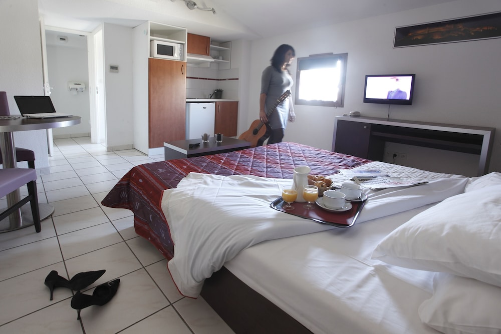 Located in Carcassonne, Adonis Carcassonne Résidence la Barbacane is near the airport, within a 5-minute walk of Museum of the Middle Ages and Theatre Jean Deschamps. This residence is 0.2 mi (0.4 km) from Aude Gate and 0.2 mi (0.4 km) from Museum of Chivalry, Arms & Archery. Make yourself at home in one of the 70 guestrooms, featuring kitchenettes with refrigerators and stovetops. Complimentary wireless internet access keeps you connected, and flat-screen televisions are provided for your entertainment. Conveniences include safes and desks, and you can also request irons/ironing boards. Distances are displayed to the nearest 0.1 mile and kilometer.