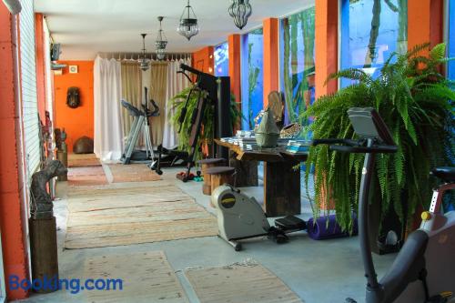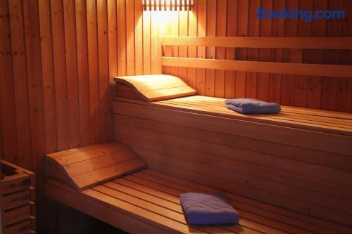 An infinity pool, a sauna, a steam room and a gym, as well as a table tennis and a tennis court can be used for free. A wide range of beauty and spa treatments are offered. There is also a library stocked with books, magazines, CDs and DVDs.