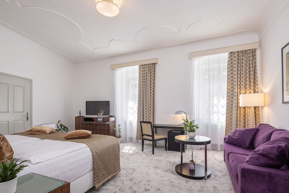 A stay at Bellevue hotel Český Krumlov places you in the heart of Český Krumlov, steps from Latrán Houses and Christi and our Lady of Sorrows Church. This hotel is 0.1 mi (0.1 km) from Church of St Jošt and 0.1 mi (0.1 km) from Minorite Monastery. Stay in one of 65 guestrooms featuring LCD televisions. Your room comes with a memory foam bed. Complimentary wireless internet access keeps you connected, and satellite programming is available for your entertainment. Bathrooms have showers and hair dryers. Distances are displayed to the nearest 0.1 mile and kilometer.
