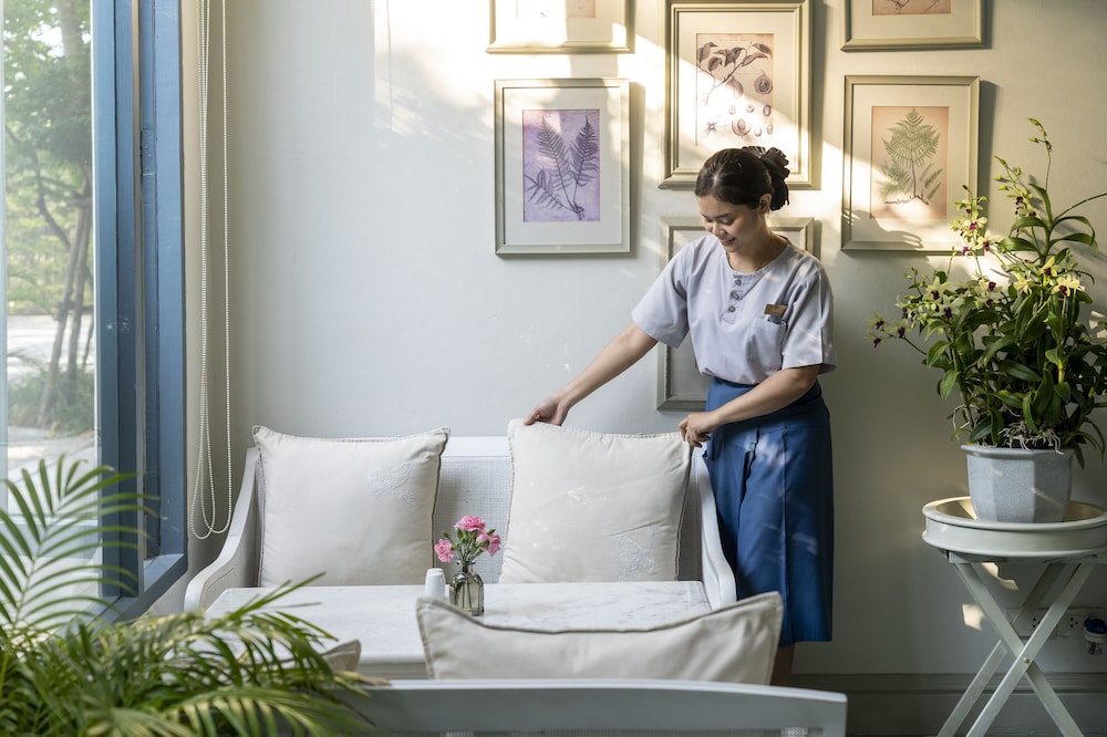 When you stay at Devasom Hua Hin Resort in Cha-am, you'll be in the historical district, within a 15-minute drive of Hua Hin Night Market and Hua Hin Railway Station. This beach hotel is 7.1 mi (11.4 km) from Hua Hin Beach and 8.3 mi (13.3 km) from Hua Hin Market Village. Make yourself at home in one of the 23 air-conditioned rooms featuring refrigerators and free minibar items. Rooms have private balconies. 42-inch Smart televisions with cable programming provide entertainment, while complimentary wireless internet access keeps you connected. Private bathrooms with separate bathtubs and showers feature rainfall showerheads and designer toiletries. Distances are displayed to the nearest 0.1 mile and kilometer.