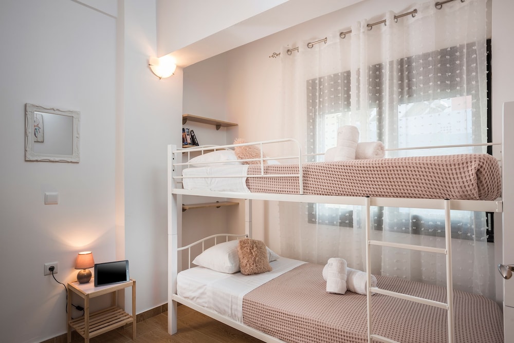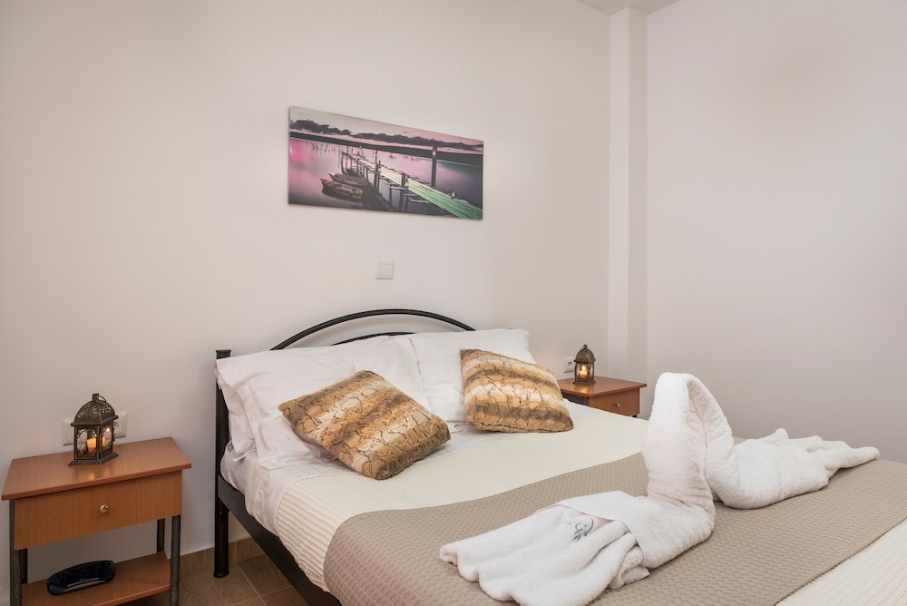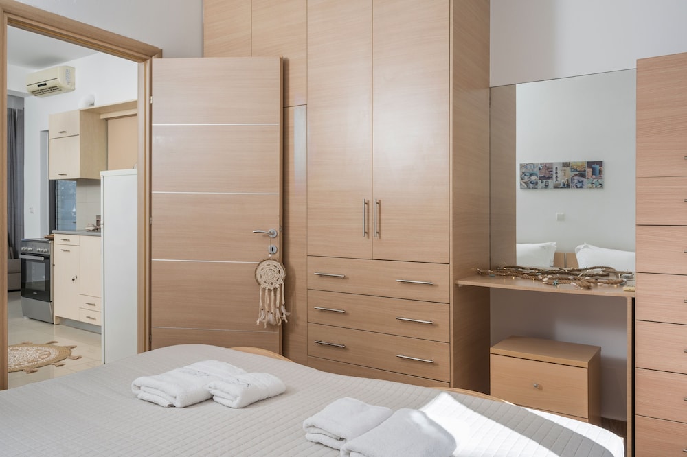 When you stay at Athina's Flat on the sea in Chania, you'll be on the beach, just steps from Agia Marina Beach and 14 minutes by foot from Platanias Beach. This beach hotel is 0.9 mi (1.5 km) from Stalos Beach and 3 mi (4.9 km) from Kalamaki Beach. Make yourself at home in one of the individually decorated guestrooms, featuring kitchens with refrigerators and ovens. Your bed comes with premium bedding, and all rooms are furnished with sofa beds. Rooms have private furnished lanais. 32-inch flat-screen televisions with satellite programming provide entertainment, while complimentary wireless internet access keeps you connected. Distances are displayed to the nearest 0.1 mile and kilometer.