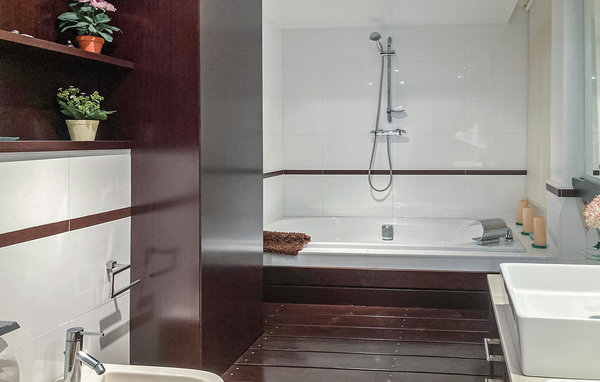This spacious apartment on the upper floors of an apartment building welcomes you directly on the beach. The tasteful furnishings and large windows not only fill the rooms with natural light, but also ensure that you can sit on the sofa with a view of the beach and the sea or gaze out over the sea while barbecuing on the roof terrace. Relax in the whirlpool bathtub or use the communal pool, where you can swim your first laps in the morning while your loved ones are still asleep or preparing breakfast. There's no shortage of sports either, as you can try your hand at paddle tennis before heading to the beach.