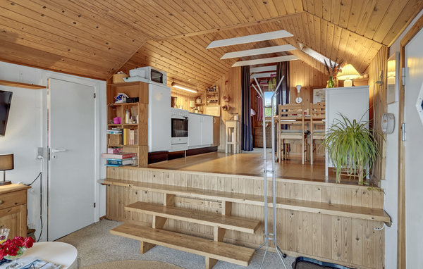 North of Esbjerg, just a few steps from the water, this vacation home welcomes you. The bright interior is characterized by the wooden walls and ceilings, which creates an authentic and cozy atmosphere. When the weather is nice, you can enjoy a freshly brewed coffee on the terrace overlooking the sea in the morning. Spend relaxing afternoons in the garden furniture and watch the birds' flights or watch the children playing.