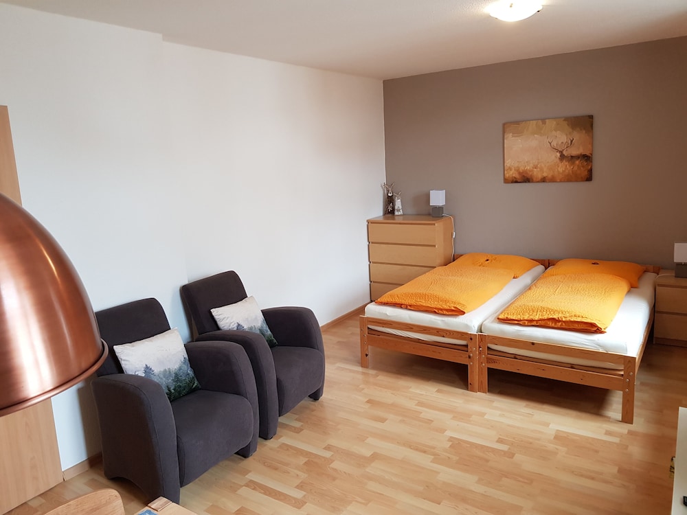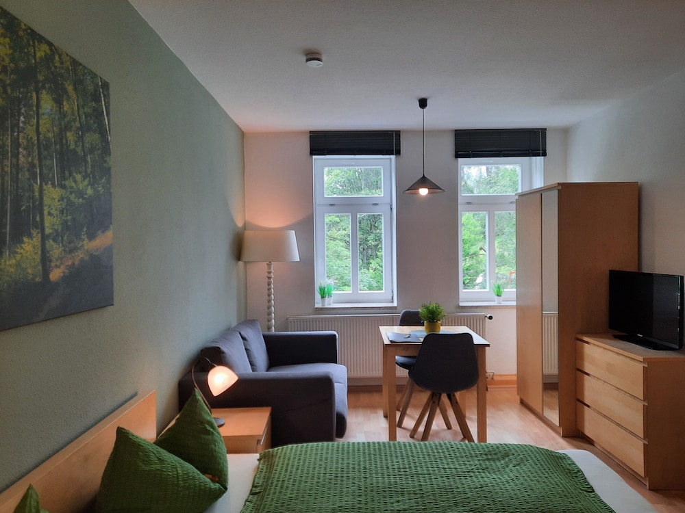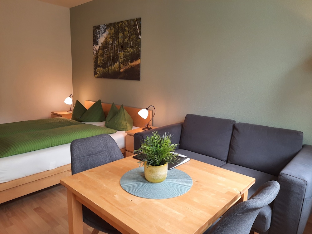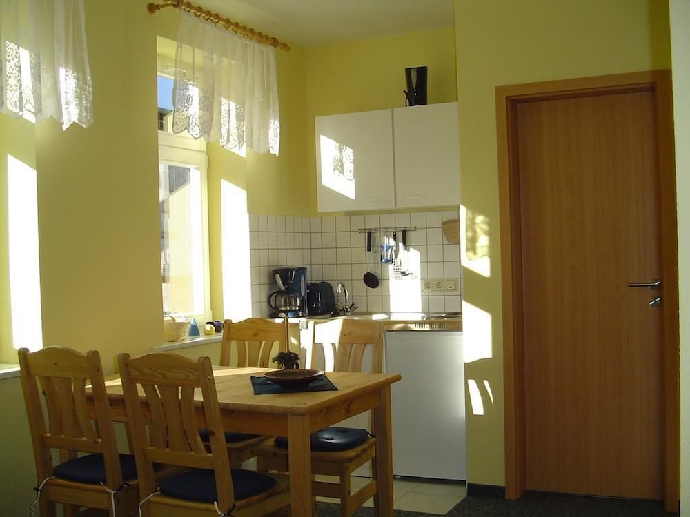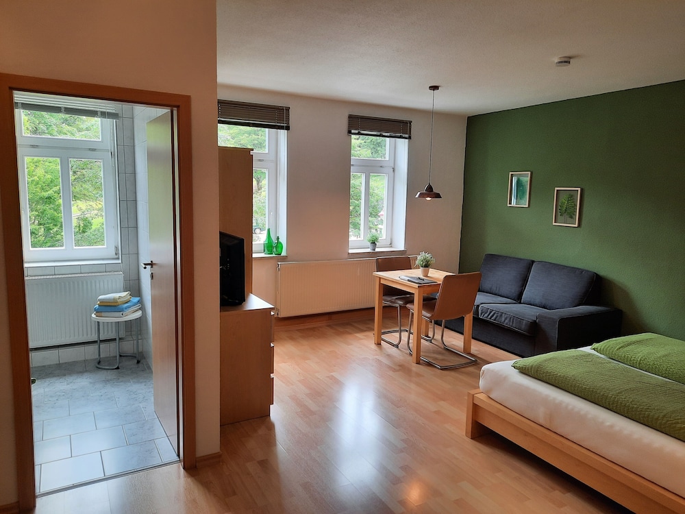 When you stay at Pension Zum Glasmacher in Suhl, you'll be in a national park, just steps from Thuringian Forest and 6 minutes by foot from Am Ritter. This family-friendly aparthotel is 7.6 mi (12.2 km) from Rennsteiggarten Oberhof and 9 mi (14.5 km) from H2Oberhof Wellnessbad. Stay in one of 7 guestrooms featuring Smart televisions. Complimentary wireless internet access keeps you connected, and satellite programming is available for your entertainment. Bathrooms with showers are provided. Distances are displayed to the nearest 0.1 mile and kilometer.