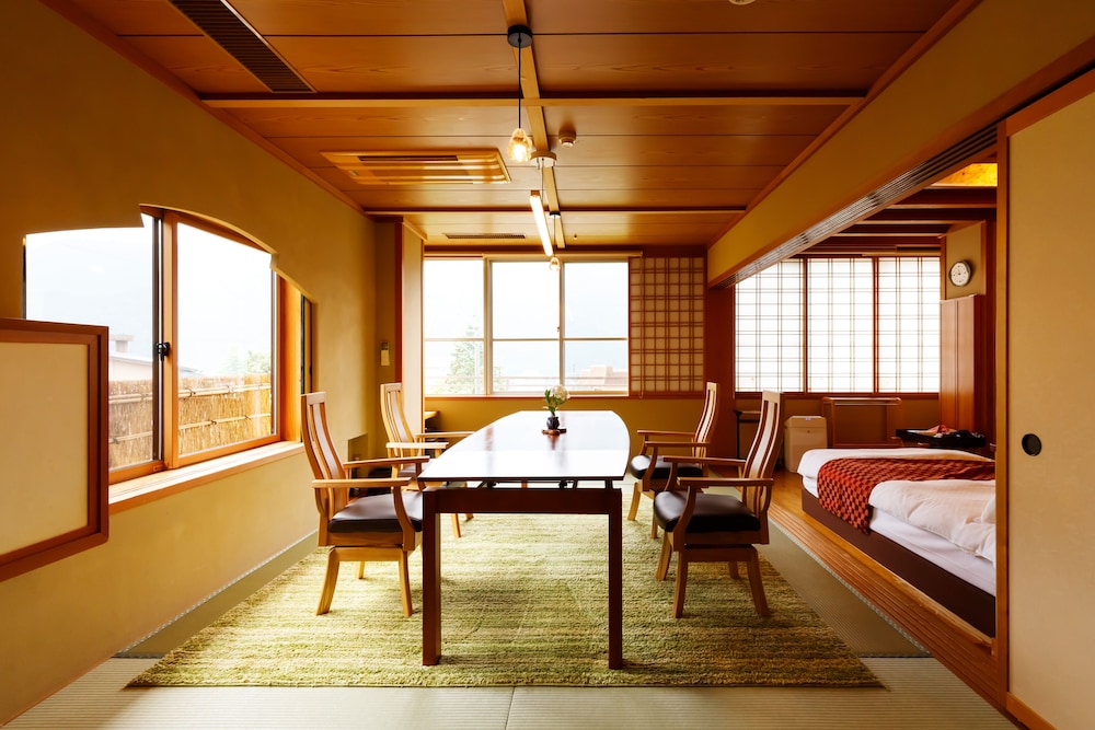 Featured amenities include complimentary newspapers in the lobby, dry cleaning/laundry services, and luggage storage. A train station pick-up service is provided at no charge, and free self parking is available onsite. Enjoy recreation amenities such as hot springs or take in the view from a garden. Additional features at this ryokan include complimentary wireless internet access and concierge services. Getting to nearby attractions is a breeze with the complimentary area shuttle that operates within 2 kilometers. Enjoy a meal at the restaurant or snacks in the coffee shop/cafe. The ryokan also offers room service (during limited hours). A complimentary Japanese breakfast is served daily from 7:30 AM to 9:30 AM.You'll be asked to pay the following charges at the property. Fees may include applicable taxes: