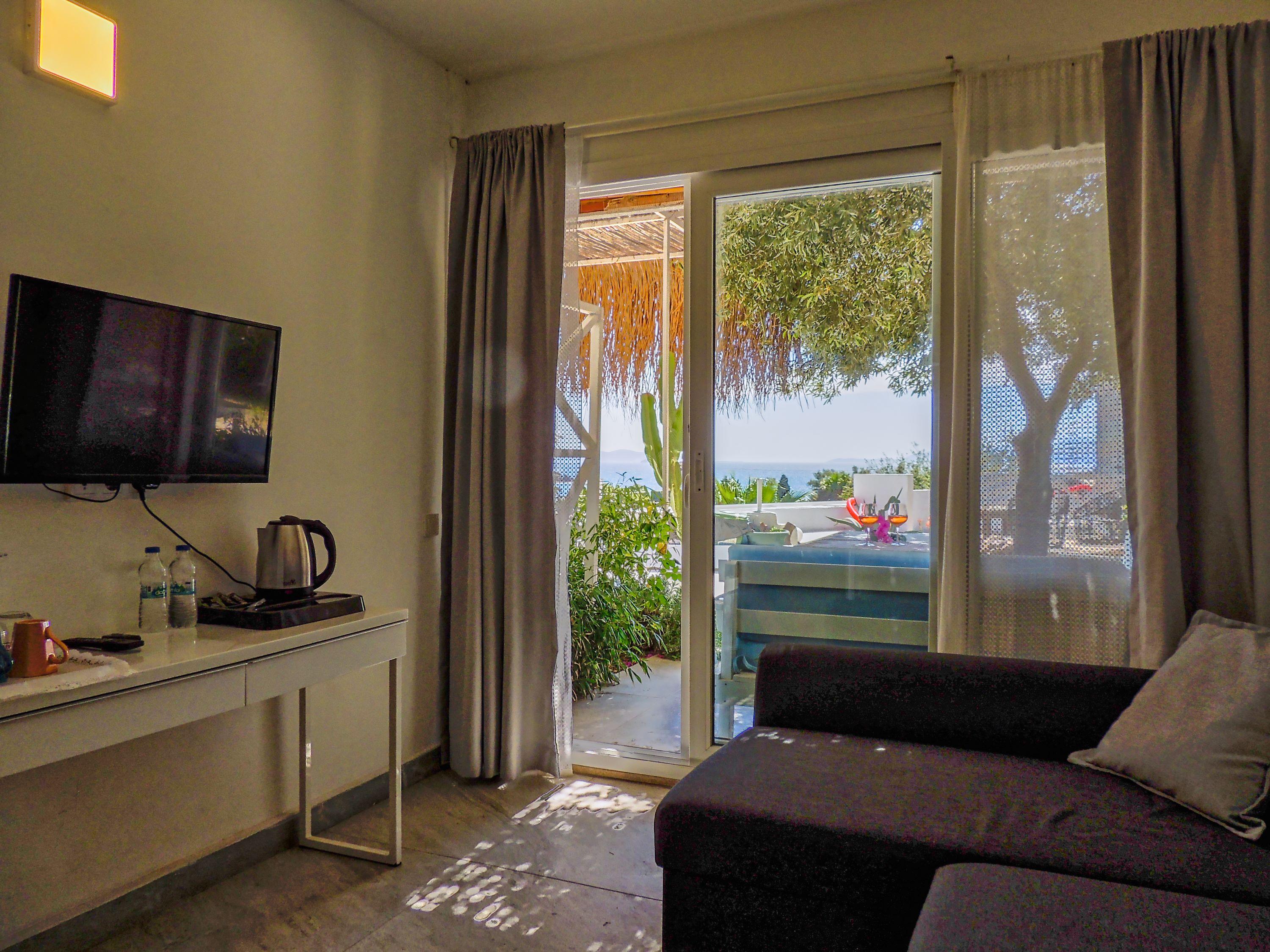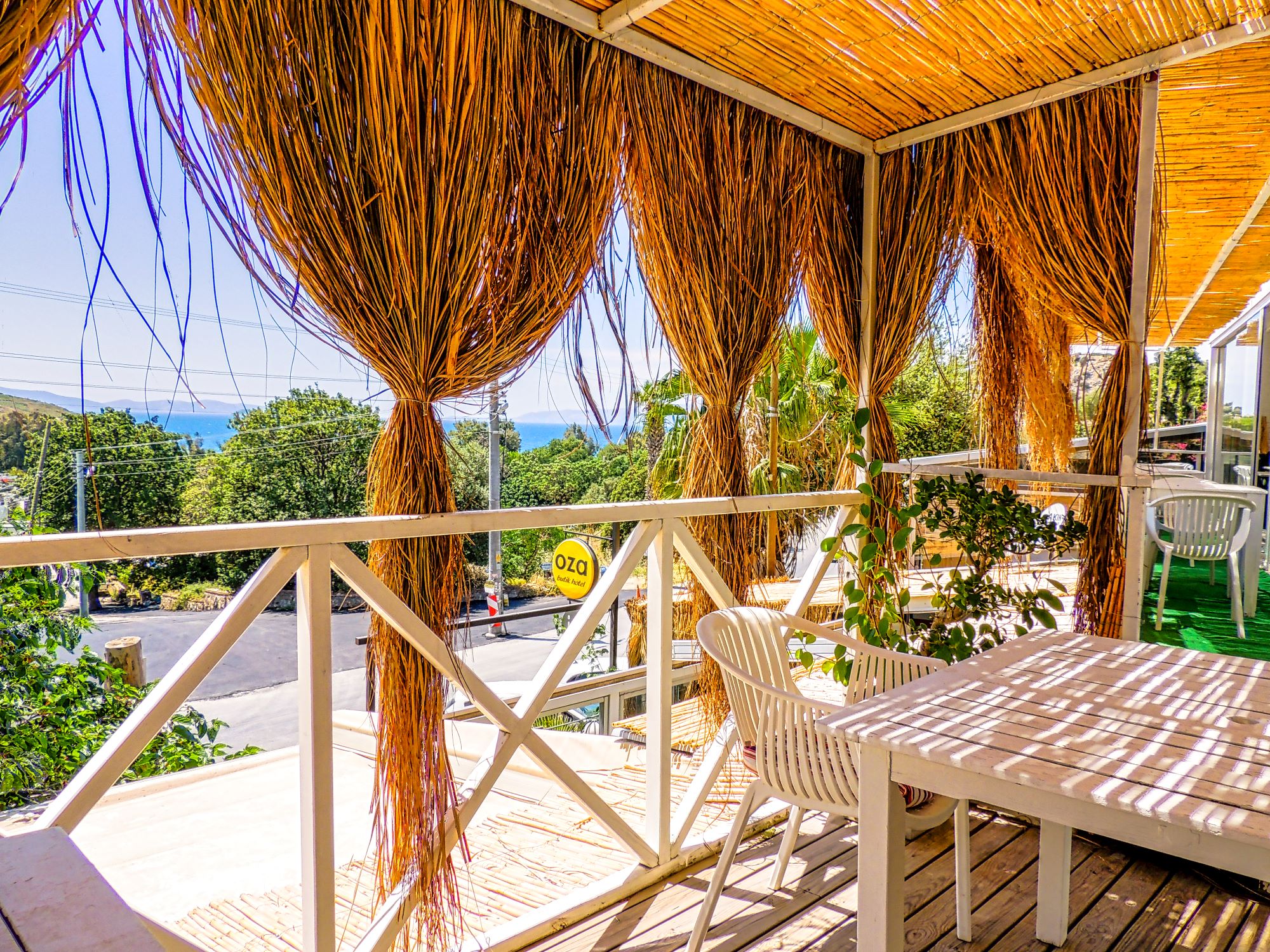 This lovely boutique hotel can be found in Bodrum gumusluk.it is very close (only 2 min walk)to the beach, fish restaurants and to the bars.Oza boutique hotel has 9 rooms, and all the rooms have sea view, aircondition.all rooms have wide balkonies and terraces.hotel hve 4 terrace rooms, 4 garden floor rooms, and 1 for honeymoon.local buses stops at the hotel entrance.