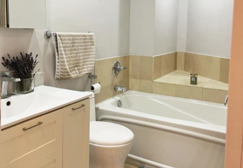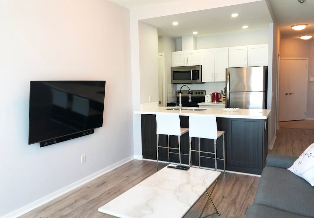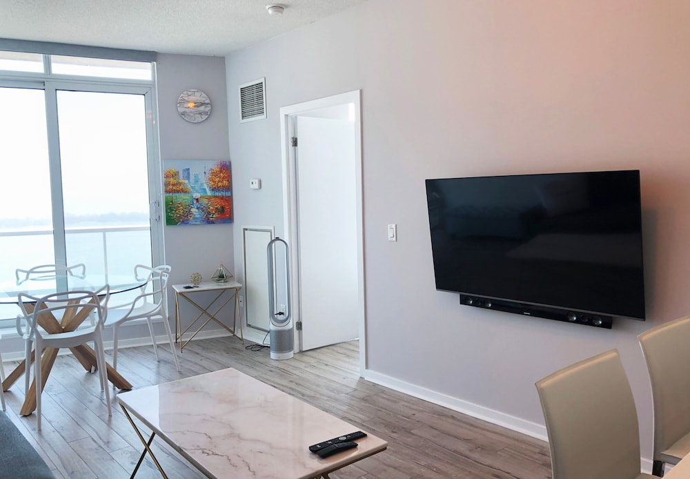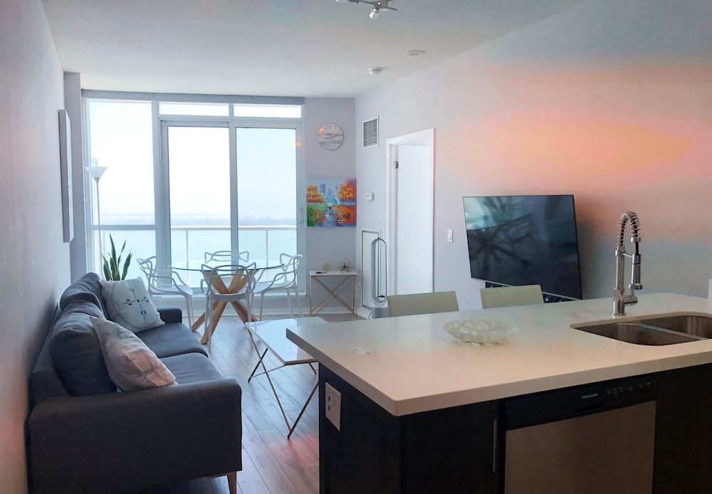 With a stay at Queens Quay-Downtown-Lakeview -CN view, you'll be centrally located in Toronto, just a 4-minute walk from Lake Ontario and 6 minutes by foot from Scotiabank Arena. This condo is 0.4 mi (0.7 km) from Ripley's Aquarium of Canada and 0.4 mi (0.7 km) from Rogers Centre. Make yourself at home in one of the 2 individually decorated guestrooms, featuring kitchens with full-sized refrigerators/freezers and ovens. 55-inch LED televisions with satellite programming provide entertainment, while complimentary wireless internet access keeps you connected. Conveniences include desks and separate sitting areas. Distances are displayed to the nearest 0.1 mile and kilometer.