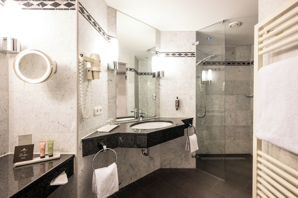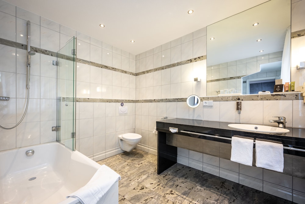A stay at Hotel HerzogsPark places you in the heart of Herzogenaurach, within a 5-minute drive of Golf Club Herzogenaurach and Freizeitbad Atlantis. This luxury hotel is 15 mi (24.1 km) from Playmobil FunPark and 15.1 mi (24.3 km) from Nuremberg Christmas Market. Make yourself at home in one of the 75 individually decorated guestrooms, featuring minibars and flat-screen televisions. Complimentary wireless internet access keeps you connected, and satellite programming is available for your entertainment. Private bathrooms have complimentary toiletries and hair dryers. Conveniences include safes and desks, as well as phones with free local calls. Distances are displayed to the nearest 0.1 mile and kilometer.