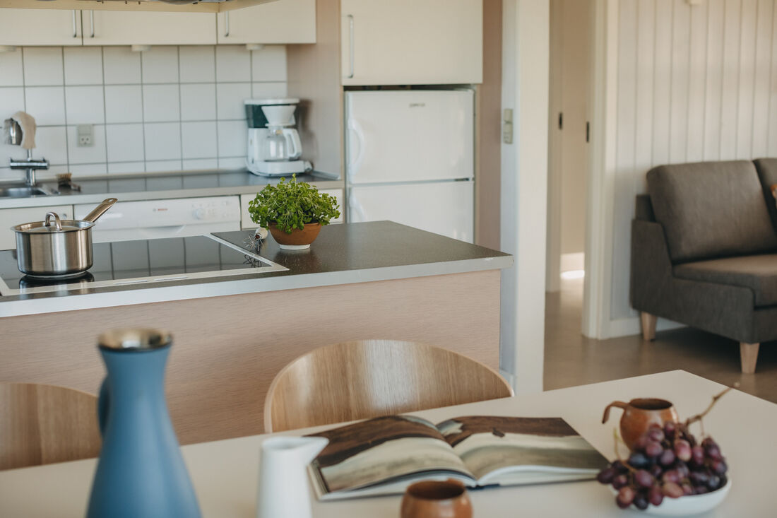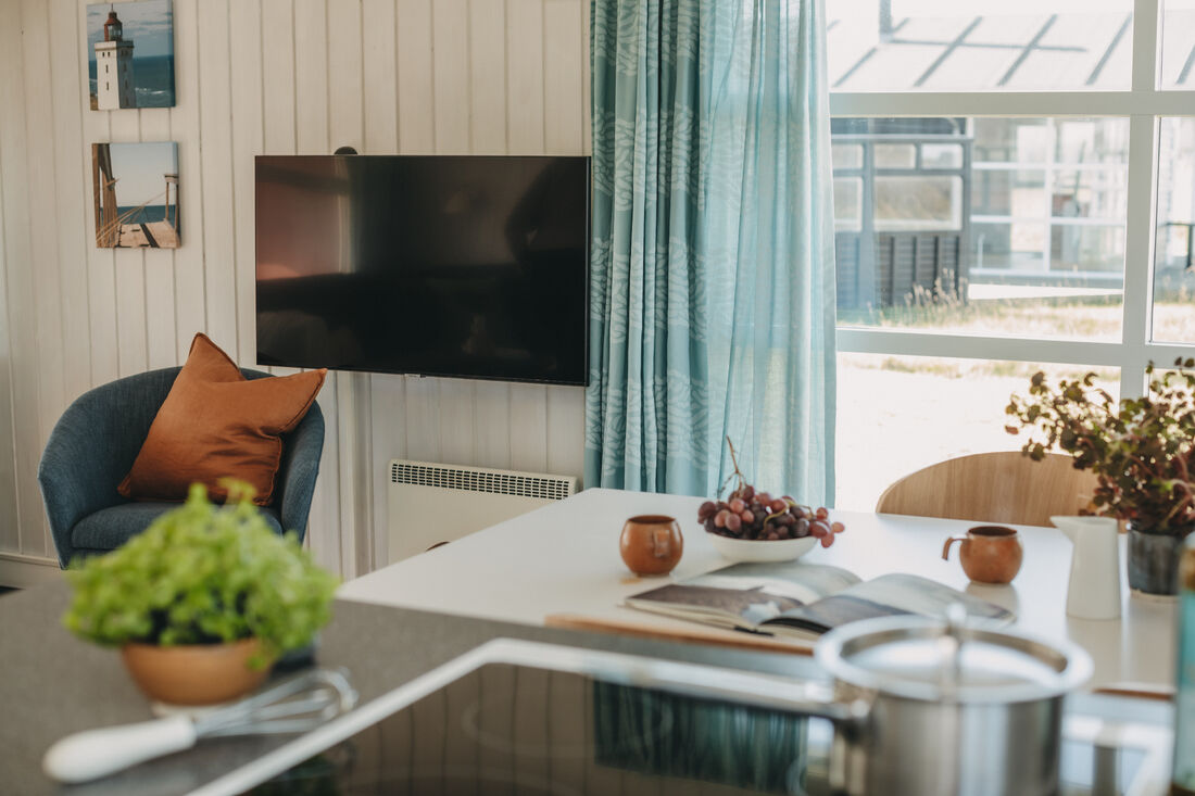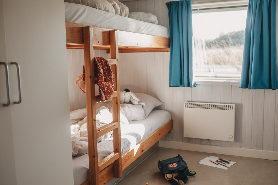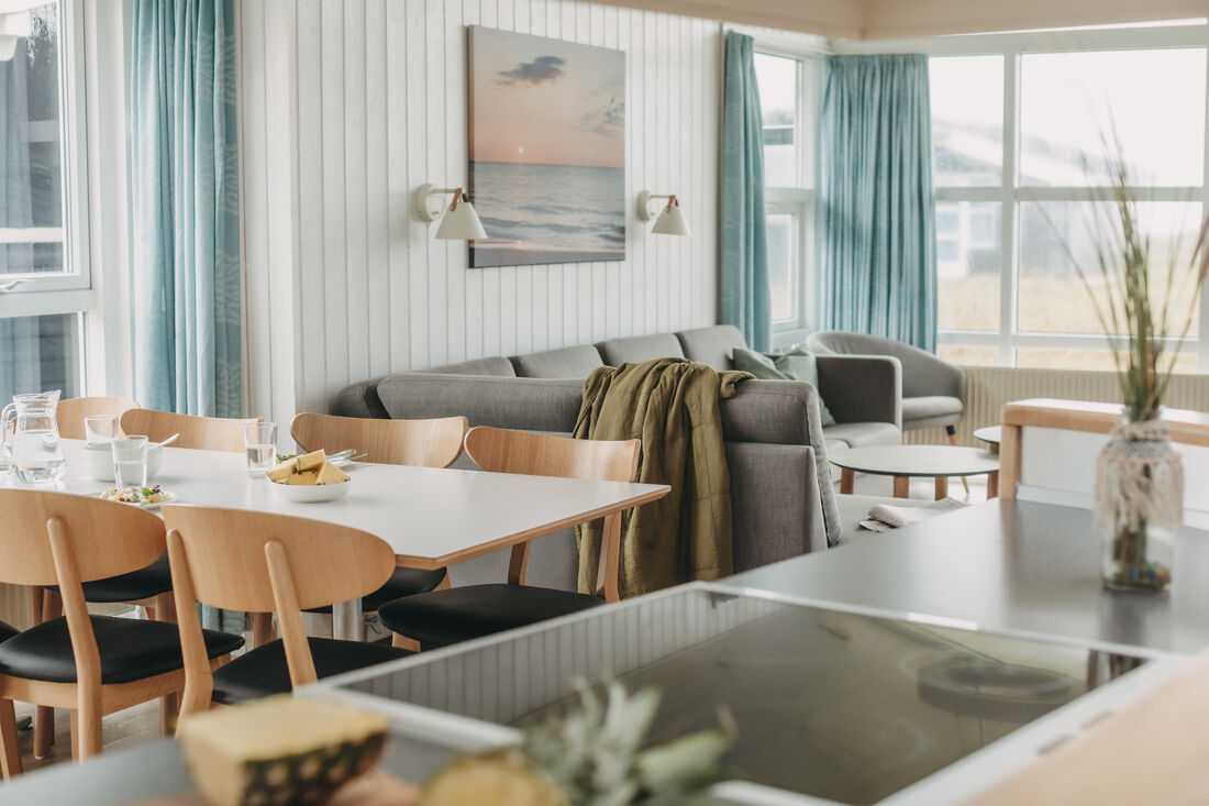 You will have a great time at the Atlantis water park. The water slide is 78 metres, with cool effects, including running daylight, waterfalls, sounds and flashing lights. All of the effects are activated by touch points on your way down. Once you reach the bottom, you can see how fast you went! The water park has several hot tubs, a current channel, a warm lagoon and a separate 25-metre swimming pool. It has a children's pool, a steam room, a normal sauna and a solarium. ** Entry to the water park is included. ** So take off your shoes and feel the waves and the sand between your toes. A tropical water park with a southern feel and 31 degrees in the shade, all year round! There is also a large indoor play world, with many different activity stations. There are staff on hand to help children of all ages with the different activities. Entry to the indoor play world is included. You can also find the Romulus spa (for adults only, charge applies) where you can treat yourself to various body treatments (charge applies). Other facilities include a cafe at the water park, as well as a pizzeria and a delightful restaurant where you can enjoy a delicious lunch or dinner. There is an activity centre where you can play badminton, table tennis and squash . The basement is home to a modern bowling centre and an Irish pub. Outside you will find tennis courts, a beautiful mini golf course, and areas for other activities. There is also a well-stocked shop in the area. You can easily walk to a wonderful sandy beach on the North Sea. You cannot smoke indoors, either in the cabins or in the centre. There is also an old-fashioned working farm called Klithusegården, which is not too far from the holiday village. It shows you how the farm's animals are reared and cared for. There is also a horse riding centre with Icelandic horses and Shetland ponies. You can hire barbecues, bikes, prams, etc. Any extra beds will be sofa beds. There is an open fire in all of the homes (except for DK-10053). Every home has 1 free children's bed and high chair (however, DK-10058 has two children's beds and high chairs for free). Large terraces with outdoor furniture. Only 12 km from Hjørring.