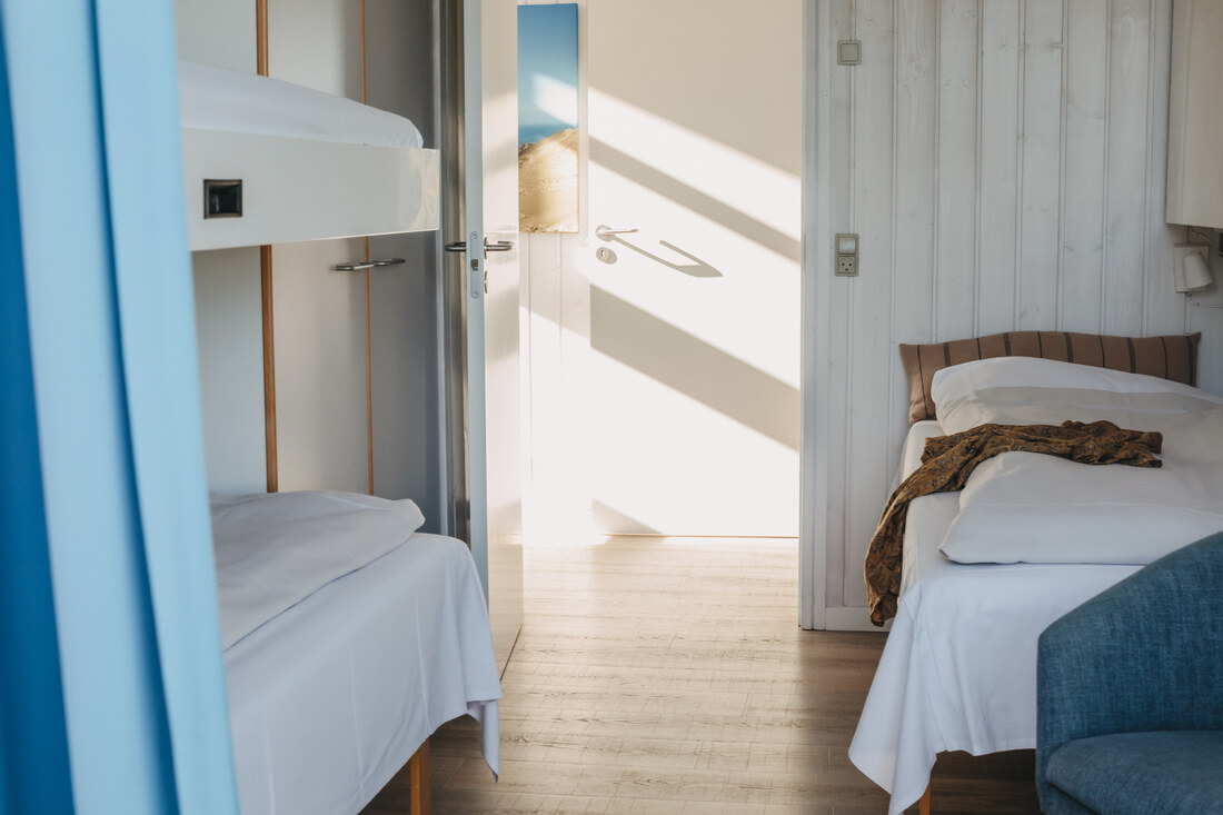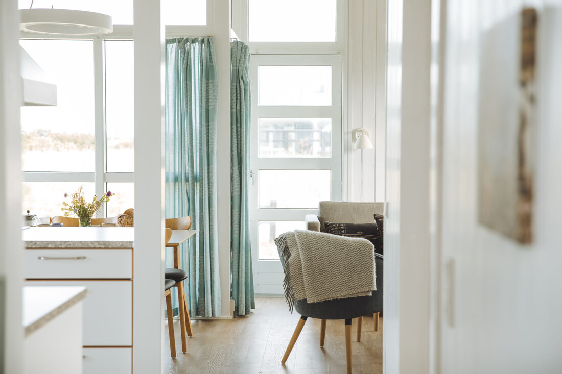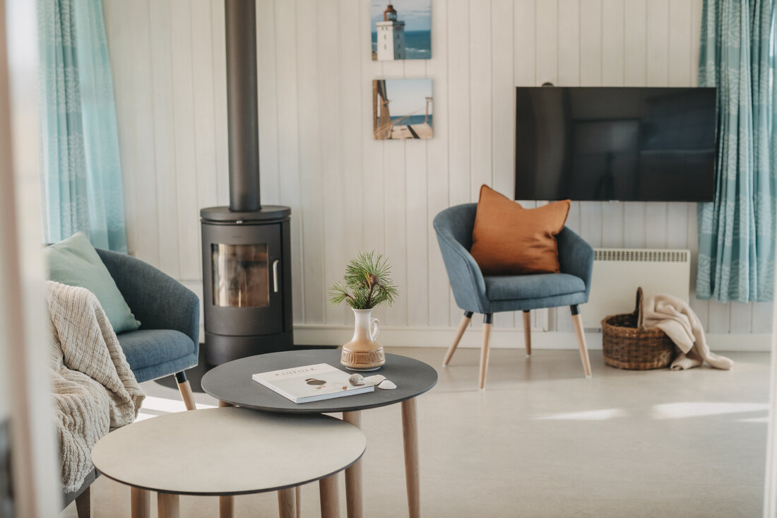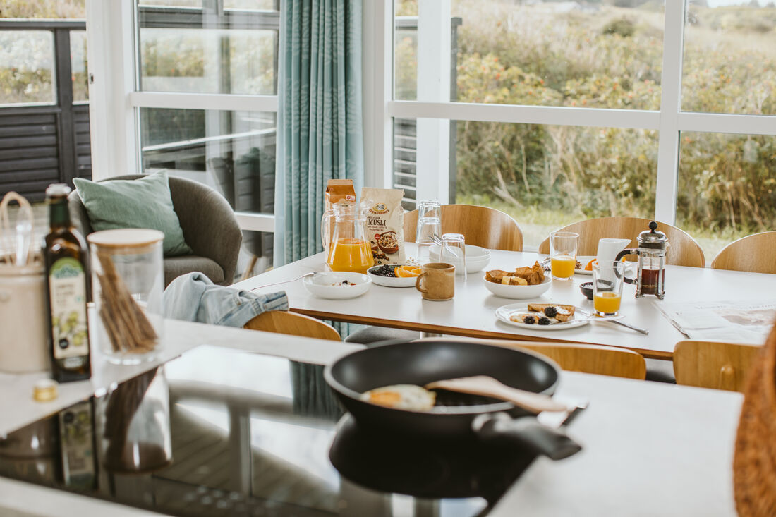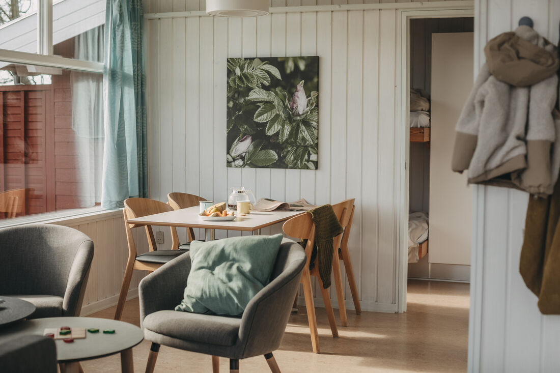 You will have a great time at the Atlantis water park. The water slide is 78 metres, with cool effects, including running daylight, waterfalls, sounds and flashing lights. All of the effects are activated by touch points on your way down. Once you reach the bottom, you can see how fast you went! The water park has several hot tubs, a current channel, a warm lagoon and a separate 25-metre swimming pool. It has a children's pool, a steam room, a normal sauna and a solarium. ** Entry to the water park is included. ** So take off your shoes and feel the waves and the sand between your toes. A tropical water park with a southern feel and 31 degrees in the shade, all year round! There is also a large indoor play world, with many different activity stations. There are staff on hand to help children of all ages with the different activities. Entry to the indoor play world is included. You can also find the Romulus spa (for adults only, charge applies) where you can treat yourself to various body treatments (charge applies). Other facilities include a cafe at the water park, as well as a pizzeria and a delightful restaurant where you can enjoy a delicious lunch or dinner. There is an activity centre where you can play badminton, table tennis and squash . The basement is home to a modern bowling centre and an Irish pub. Outside you will find tennis courts, a beautiful mini golf course, and areas for other activities. There is also a well-stocked shop in the area. You can easily walk to a wonderful sandy beach on the North Sea. You cannot smoke indoors, either in the cabins or in the centre. There is also an old-fashioned working farm called Klithusegården, which is not too far from the holiday village. It shows you how the farm's animals are reared and cared for. There is also a horse riding centre with Icelandic horses and Shetland ponies. You can hire barbecues, bikes, prams, etc. Any extra beds will be sofa beds. There is an open fire in all of the homes (except for DK-10053). Every home has 1 free children's bed and high chair (however, DK-10058 has two children's beds and high chairs for free). Large terraces with outdoor furniture. Only 12 km from Hjørring.