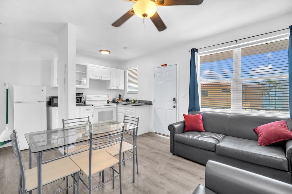 With a stay at Laguna Blu Beach in Hollywood (Hollywood Beach), you'll be a 1-minute drive from Hollywood Beach and 7 minutes from Dania Pointe. This beach aparthotel is 6.5 mi (10.5 km) from Aventura Mall and 7 mi (11.3 km) from Port Everglades. Make yourself at home in one of the 8 individually decorated guestrooms, featuring kitchens with full-sized refrigerators/freezers and ovens. Rooms have private patios. 40-inch Smart televisions with digital programming provide entertainment, while complimentary wireless internet access keeps you connected. Conveniences include separate sitting areas and microwaves. Distances are displayed to the nearest 0.1 mile and kilometer.