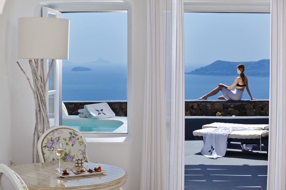 When you stay at San Antonio in Santorini, you'll be near the beach, a 1-minute drive from Santorini Caldera and 6 minutes from Oia Blue Dome Church Viewpoint. This luxury hotel is 8.3 mi (13.3 km) from Athinios Port and 3.7 mi (5.9 km) from Oia Castle. Make yourself at home in one of the 29 air-conditioned rooms featuring minibars and espresso makers. Rooms have private balconies or patios. Complimentary wireless internet access keeps you connected, and flat-screen televisions are provided for your entertainment. Private bathrooms with showers feature complimentary toiletries and hair dryers. Distances are displayed to the nearest 0.1 mile and kilometer.