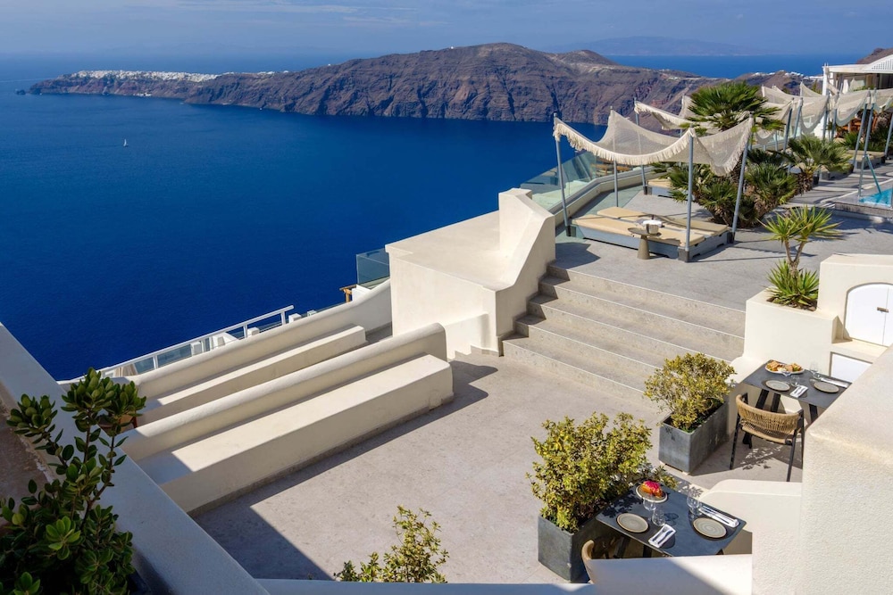 When you stay at Andromeda Villas in Santorini, you'll be near the airport, within a 15-minute drive of Athinios Port and Santorini Caldera. This family-friendly resort is 6.4 mi (10.2 km) from Kamari Beach and 6 mi (9.7 km) from Oia Blue Dome Church Viewpoint. Make yourself at home in one of the 58 individually furnished guestrooms, featuring refrigerators and LCD televisions. Your pillowtop bed comes with premium bedding. Rooms have private furnished balconies or patios. Complimentary wireless internet access keeps you connected, and satellite programming is available for your entertainment. Bathrooms feature showers, complimentary toiletries, and hair dryers. Distances are displayed to the nearest 0.1 mile and kilometer.