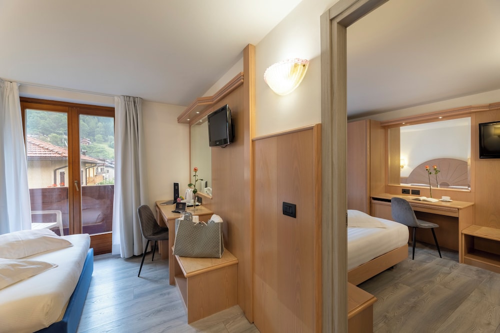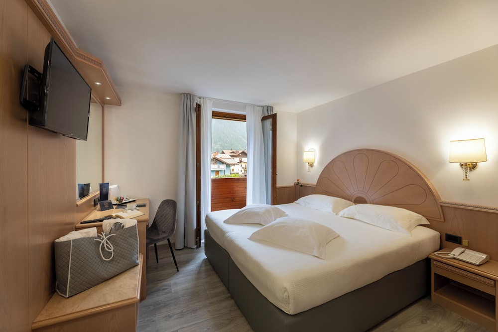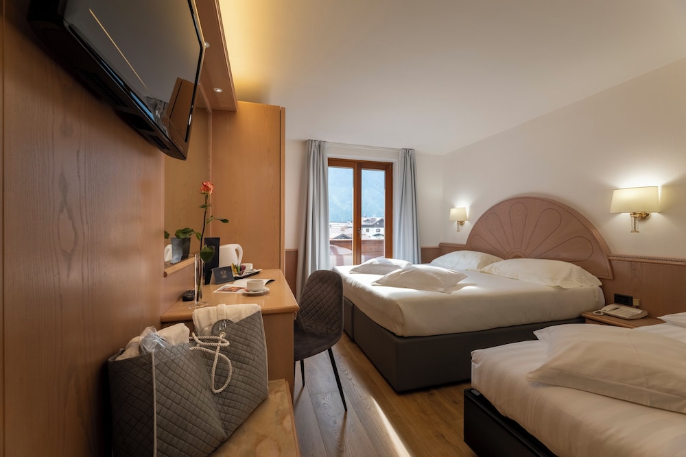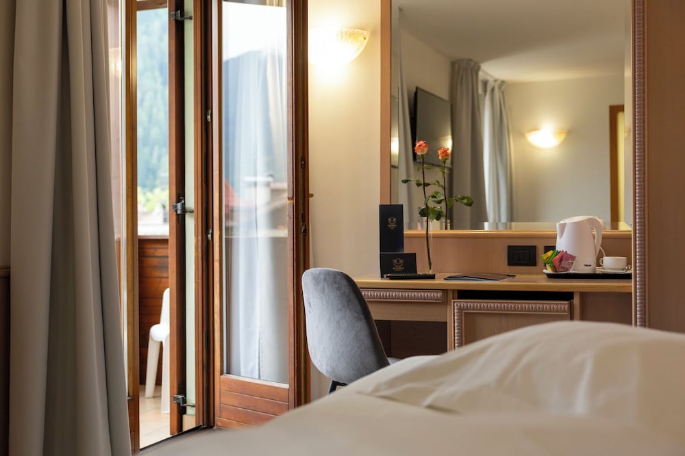 When you a stay at Olympic Palace in Pinzolo, you'll be in a shopping district, just steps from Skirama Dolomiti Adamello Brenta and Rendena Valley. This hotel is 25.6 mi (41.2 km) from Lake Molveno and 0.1 mi (0.1 km) from Brenta Group. Make yourself at home in one of the 48 guestrooms featuring refrigerators. Complimentary wireless internet access is available to keep you connected. Bathrooms feature showers with rainfall showerheads and complimentary toiletries. Conveniences include safes and desks, and housekeeping is provided daily. Distances are displayed to the nearest 0.1 mile and kilometer.