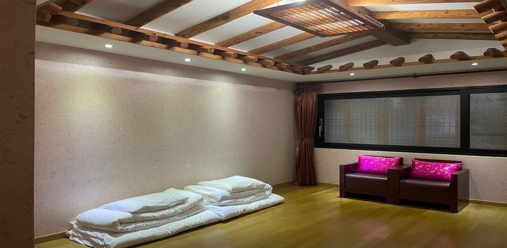 With a stay at Jeonju Hanok Taejogung Hotel in Jeonju, you'll be within a 10-minute walk of Jeonju Pungpaji Pavilion and Pungnammun Gate. This hotel is 0.7 mi (1.2 km) from Jeonju Hanok Village and 0.4 mi (0.6 km) from Gyeonggijeon. Make yourself at home in one of the 30 guestrooms featuring refrigerators and flat-screen televisions. Complimentary wireless Internet access keeps you connected, and cable programming is available for your entertainment. Private bathrooms with showers feature complimentary toiletries and hair dryers. Conveniences include electric kettles and complimentary bottled water, and housekeeping is provided on a limited basis. Distances are displayed to the nearest 0.1 mile and kilometer.