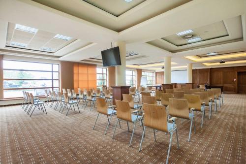 Located in Karpacz, Sandra Spa provides its guests with free access to the swimming pool complex, hot tub, dry and steam sauna, gym, fitness room and children's playroom. Free Wi-Fi access is available in this resort. Classically furnished rooms here will provide you with a flat-screen TV and a safe. There is also a refrigerator available at a request. Featuring a hairdryer, private bathrooms also come with towels. At Sandra Spa you will find a la carte restaurant and a fitness center. Other facilities offered at the property include meeting facilities. There is a pub with a bowling alley, a golf simulator, tennis and squash court and ski equipment rental, as well as minigolf. The nearest ski elevator is 1148 feet from the property. Karpacz Alpine Coaster is 1969 feet from the property, and 1.7 mi from Wang Church.WiFi is available in public areas and is free of charge. <BR />Private parking is available on site (reservation is not needed) and costs PLN 25 per day. <BR />Pets are allowed on request. Charges may apply. <BR />Children of all ages are allowed. Children 2 and under stay for 35 zł per person, per night when using an available crib. No extra beds are available. Any type of extra bed or crib is upon request and needs to be confirmed by management. Additional fees are not calculated automatically in the total cost and will have to be paid for separately during your stay.<BR />Checkin Time: 15:00<BR />Checkout End Time: 11:00<BR /><BR /><b>Hotel important information:</b> Guests are required to show a photo ID and credit card upon check-in. Please note that all Special Requests are subject to availability and additional charges may apply. AQUAPARK: Closed from Mon 24 Feb 2020 until Fri 26 Jun 2020 AQUAPARK: Closed from Sun 30 Aug 2020 until Fri 25 Jun 2021