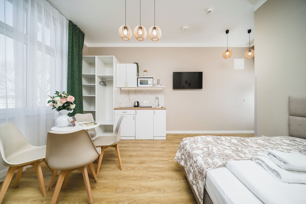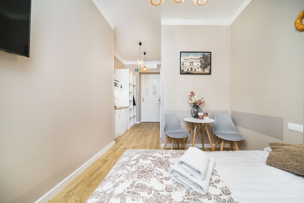 With a stay at Bagel Residence Old Town, you'll be centrally located in Kraków, within a 5-minute drive of Main Market Square and Wawel Castle. This apartment is 8 mi (12.9 km) from Wieliczka Salt Mine and 0.4 mi (0.6 km) from Dragon's Den. Make yourself at home in one of the 25 guestrooms, featuring kitchenettes with refrigerators and stovetops. 43-inch Smart televisions with cable programming provide entertainment, while complimentary wireless internet access keeps you connected. Conveniences include microwaves and irons/ironing boards, and you can also request cribs/infant beds (surcharge). Distances are displayed to the nearest 0.1 mile and kilometer.