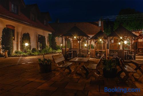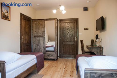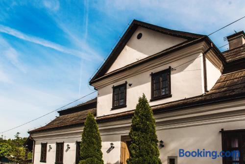 Located in Krzywaczka, 14 miles from Wawel Royal Castle, Hotel Pod Kogutkiem provides accommodations with a garden, free private parking, a terrace and a restaurant. With a bar, the 3-star hotel has air-conditioned rooms with free WiFi, each with a private bathroom. The property has room service and a 24-hour front desk for guests. At the hotel, every room has a desk and a flat-screen TV. At Hotel Pod Kogutkiem all rooms come with bed linen and towels. Guests at the accommodation can enjoy a continental or a vegetarian breakfast. Hotel Pod Kogutkiem has a playground. Guests at the hotel will be able to enjoy activities in and around Krzywaczka, like cycling. Schindler Factory Museum is 14 miles from Hotel Pod Kogutkiem, while National Museum of Krakow is 14 miles away. The nearest airport is John Paul II International Kraków–Balice Airport, 18 miles from the accommodation.