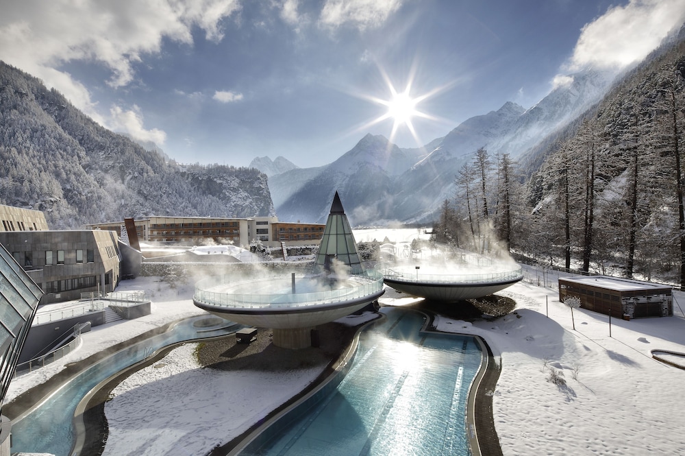 When you stay at Aqua Dome in Laengenfeld, you'll be connected to the convention center, just steps from Aqua Dome and Ötztaler Ache. This family-friendly hotel is 13.9 mi (22.4 km) from Obergurgl-Hochgurgl Ski Area and 6.3 mi (10.2 km) from Rotkogl. Make yourself at home in one of the 200 guestrooms featuring refrigerators and free minibar items. Your pillowtop bed comes with premium bedding. Rooms have private furnished balconies. Wired and wireless internet access is complimentary, and flat-screen televisions with cable programming provide entertainment. Private bathrooms with separate bathtubs and showers feature rainfall showerheads and complimentary toiletries. Distances are displayed to the nearest 0.1 mile and kilometer.