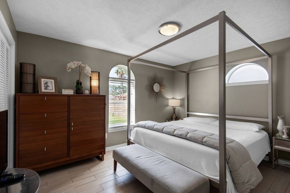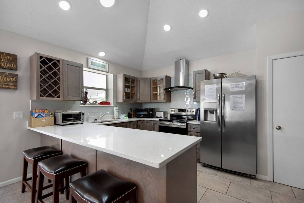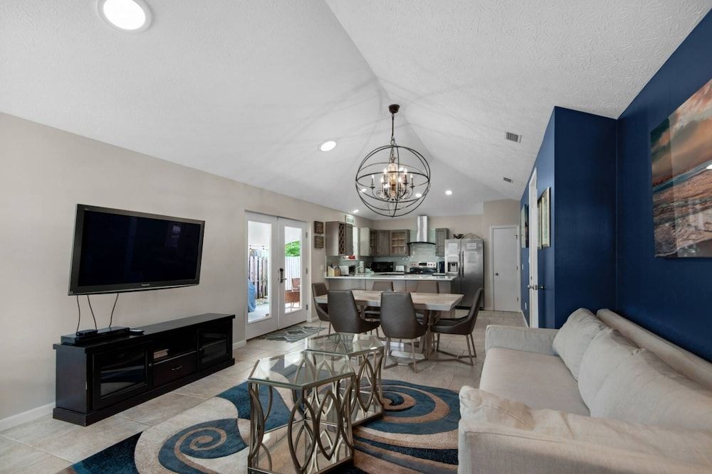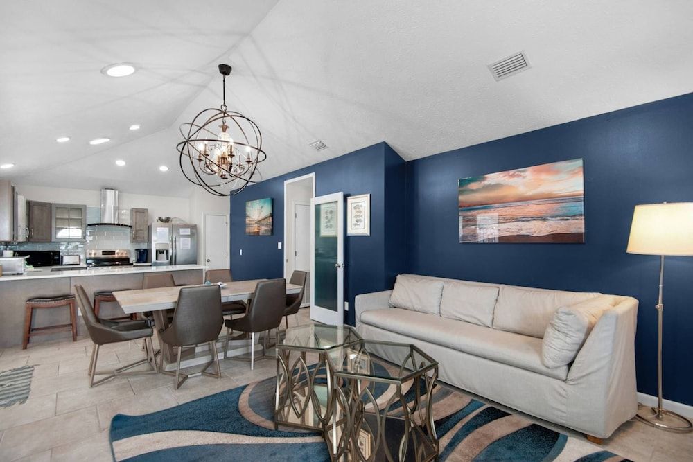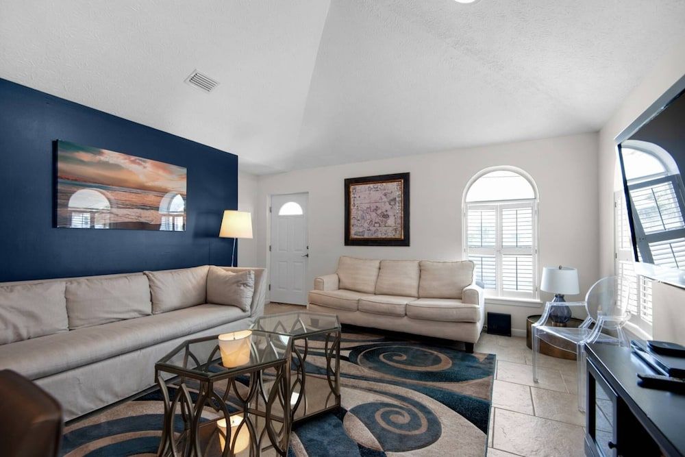 Make yourself comfortable in this air-conditioned vacation home, which features a private pool. A kitchen is outfitted with a microwave and a dishwasher.