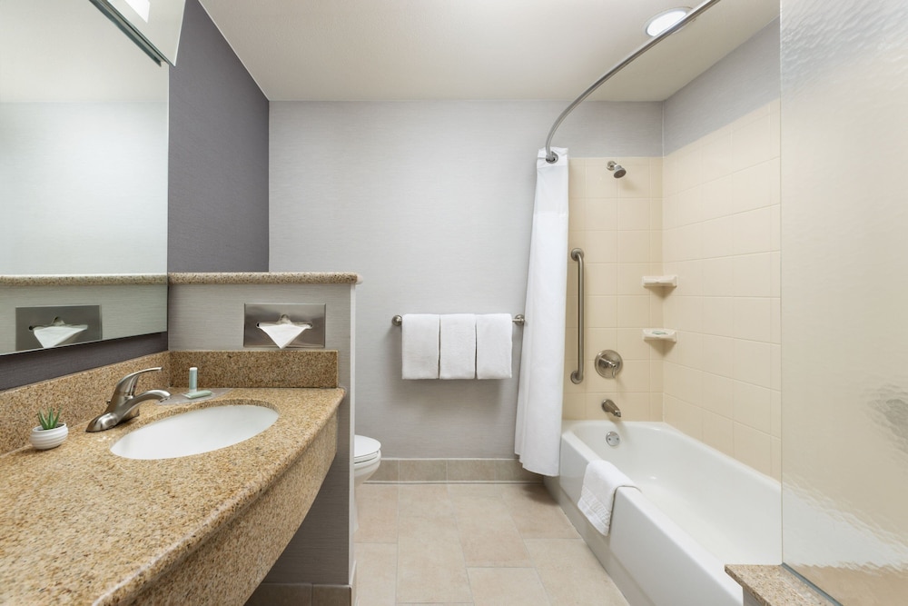 When you stay at Courtyard By Marriott Las Vegas Stadium Area in Las Vegas, you'll be in the business district, within a 5-minute drive of Allegiant Stadium and MGM Grand Garden Arena. This hotel is 1.7 mi (2.8 km) from T-Mobile Arena and 2.9 mi (4.6 km) from The Linq. Make yourself at home in one of the 140 guestrooms featuring refrigerators and microwaves. Complimentary wired and wireless internet access keeps you connected, and cable programming provides entertainment. Private bathrooms with shower/tub combinations feature complimentary toiletries and hair dryers. Conveniences include laptop-compatible safes and desks, as well as phones with free local calls. Distances are displayed to the nearest 0.1 mile and kilometer.