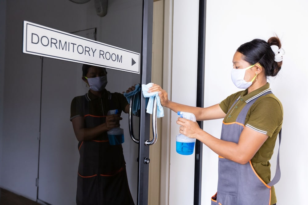- Disinfectant is used to clean the property, and commonly-touched surfaces are cleaned with disinfectant between stays.
