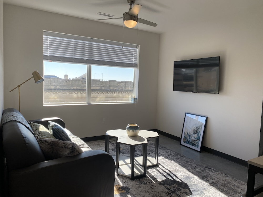 With a stay at Atmosphere Lincoln in Lincoln (Downtown Lincoln), you'll be a 3-minute walk from University of Nebraska-Lincoln and 7 minutes by foot from Pinnacle Bank Arena. This condo is 0.3 mi (0.5 km) from Lincoln Children's Museum and 0.4 mi (0.6 km) from Lied Center. Make yourself at home in one of the 12 individually decorated guestrooms, featuring kitchens with refrigerators and stovetops. 50-inch Smart televisions with digital programming provide entertainment, while complimentary wireless internet access keeps you connected. Conveniences include desks and separate sitting areas. Distances are displayed to the nearest 0.1 mile and kilometer.