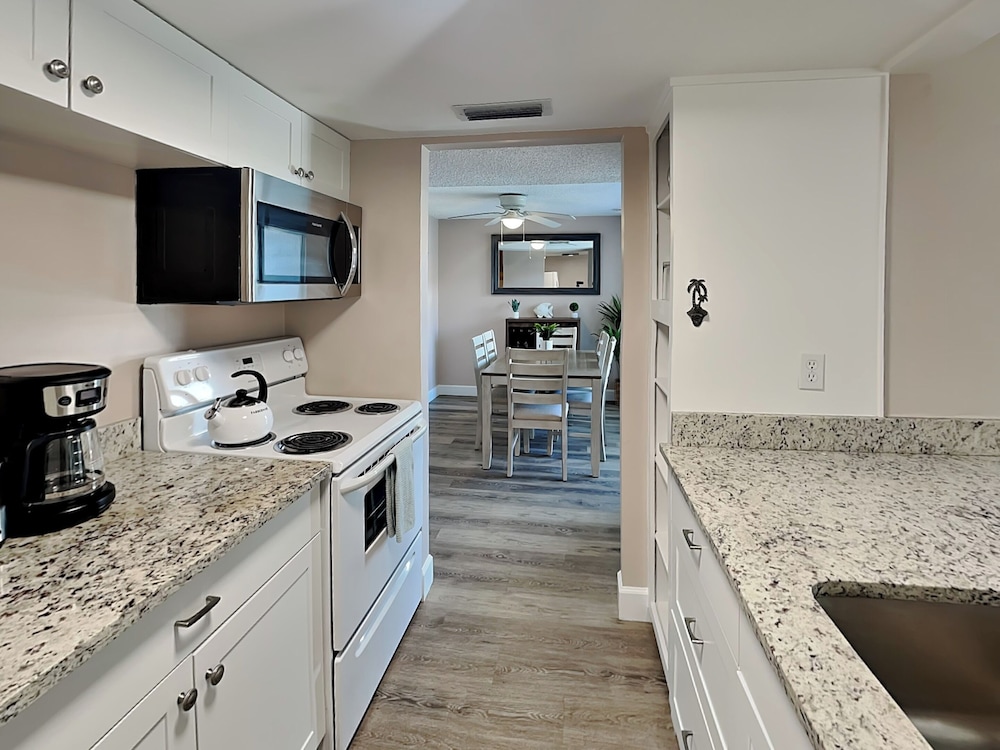 When you stay at this condo in Madeira Beach, you'll be on the beach, a 5-minute drive from John's Pass Village & Boardwalk and 5 minutes from St. Petersburg - Clearwater Beaches. This condo is 12.4 mi (19.9 km) from Tampa Bay and 14.5 mi (23.3 km) from Clearwater Beach. Make yourself comfortable in this individually decorated condo, featuring a kitchen with a refrigerator and an oven. A 42-inch flat-screen television is provided, with digital programming available. Conveniences include a microwave and a dryer. Distances are displayed to the nearest 0.1 mile and kilometer.