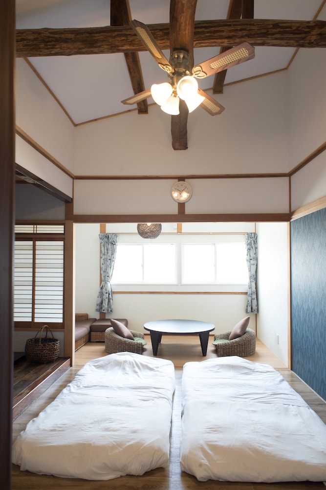 When you stay at Guesthouse Manazuru Yadokari 852 in Manazuru, you'll be near the beach, within a 5-minute drive of Kibune Shrine and Manazuru Peninsula. This guesthouse is 13.4 mi (21.5 km) from Lake Ashi and 15.8 mi (25.4 km) from Hakone Kowakien Yunessun. Make yourself at home in one of the 4 guestrooms, featuring kitchenettes with refrigerators and stovetops. Flat-screen televisions are provided for your entertainment. Distances are displayed to the nearest 0.1 mile and kilometer.